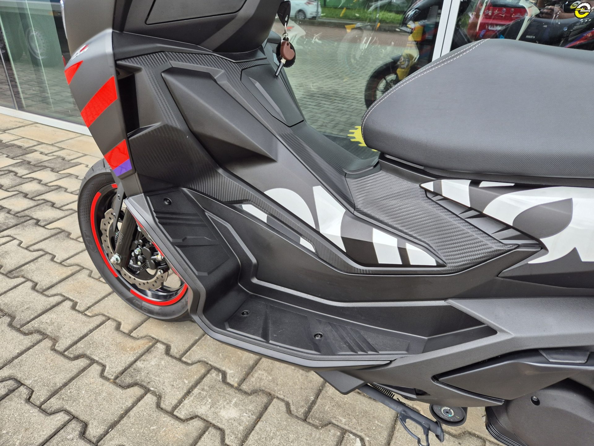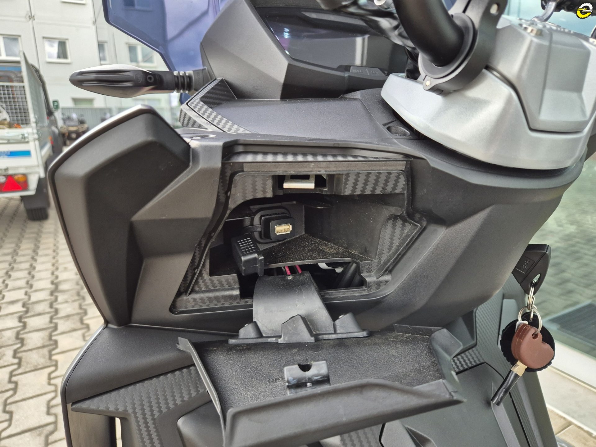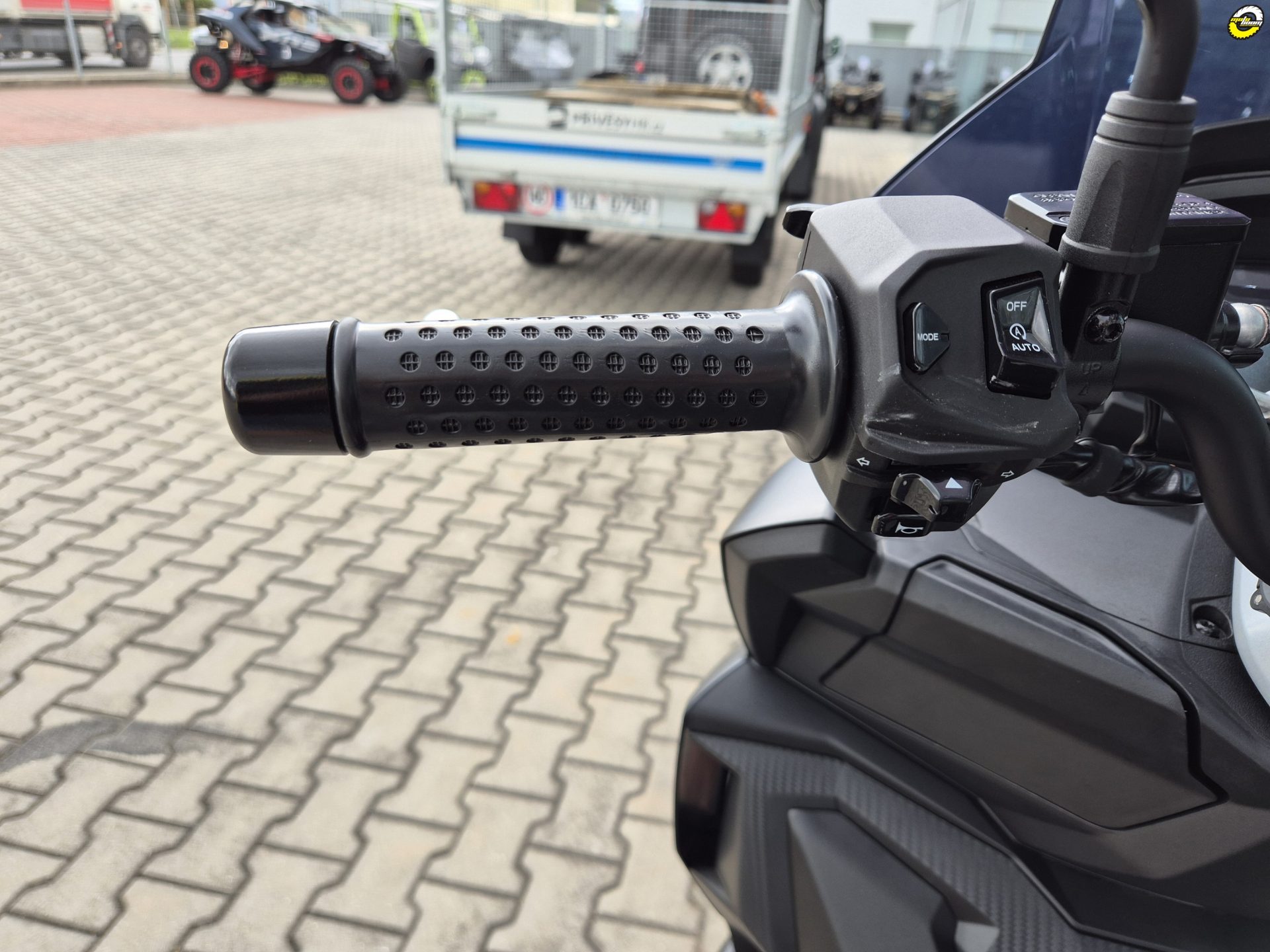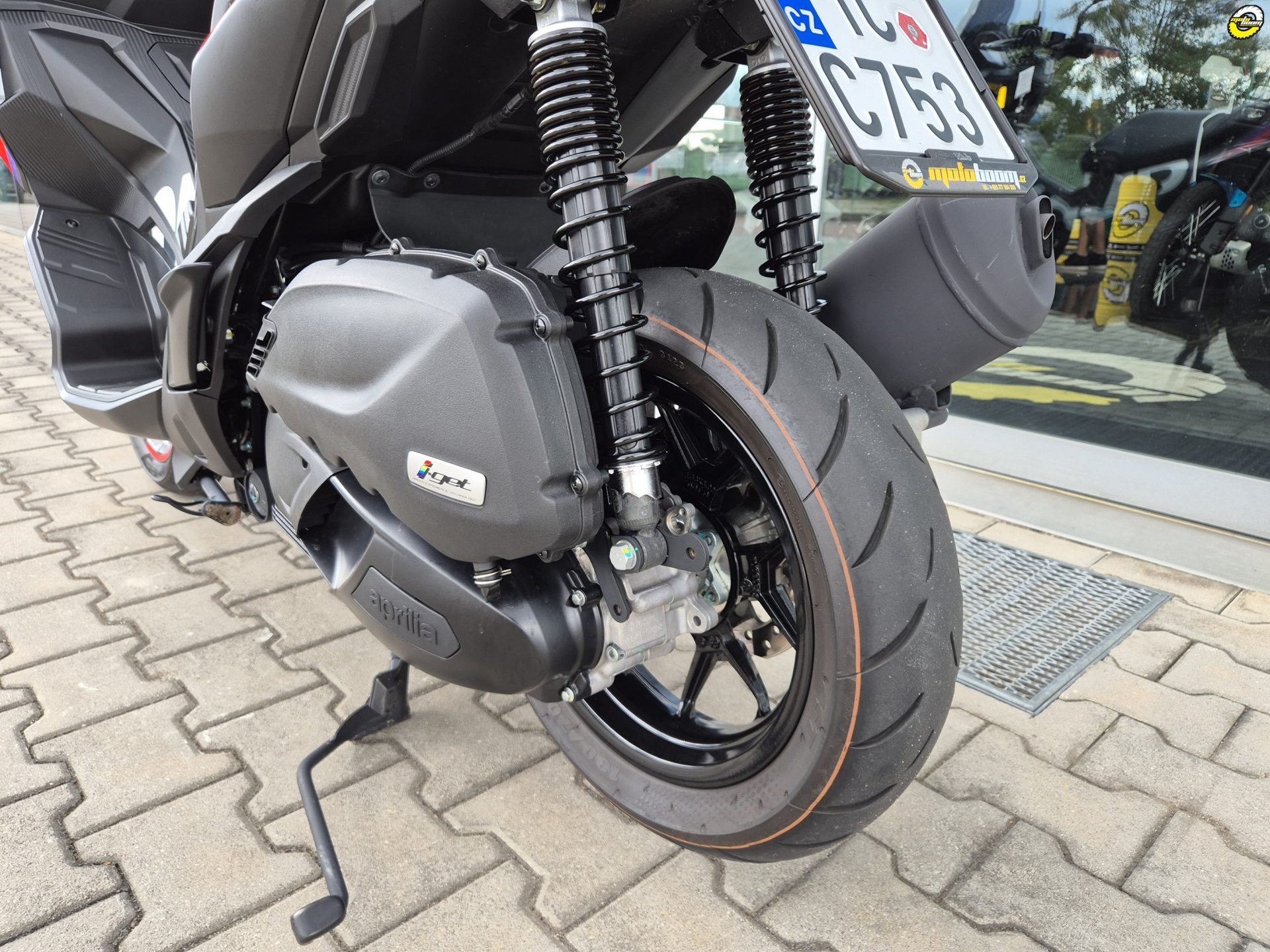 Na skútru namontován sportovní variátor Malossi + kevlarový řemen a MIA jednotka pro komunikaci s telefonem.