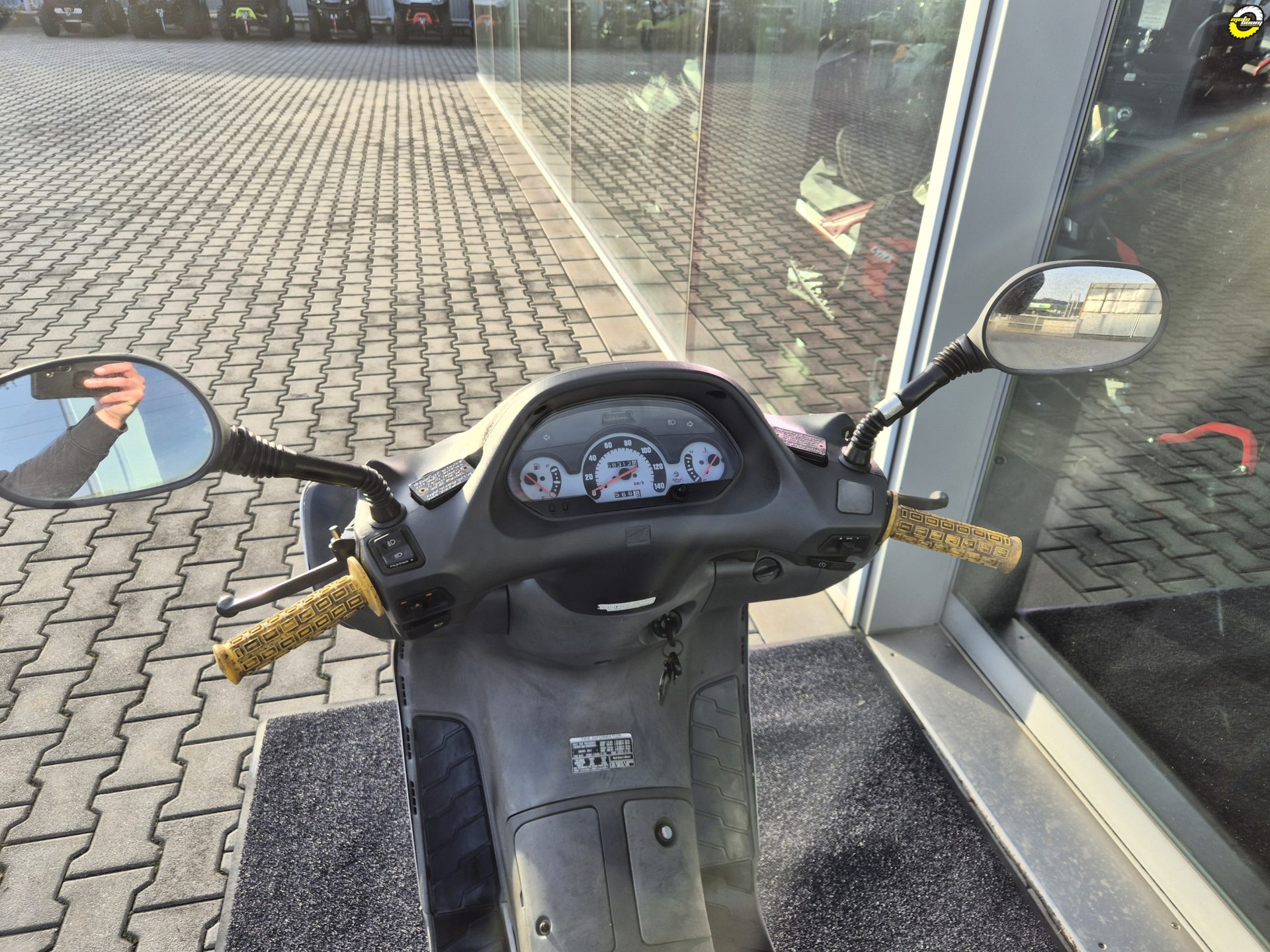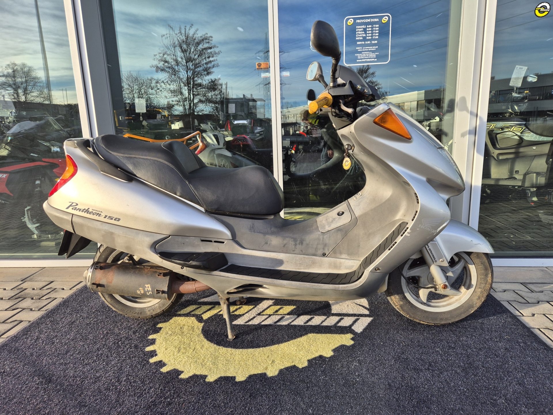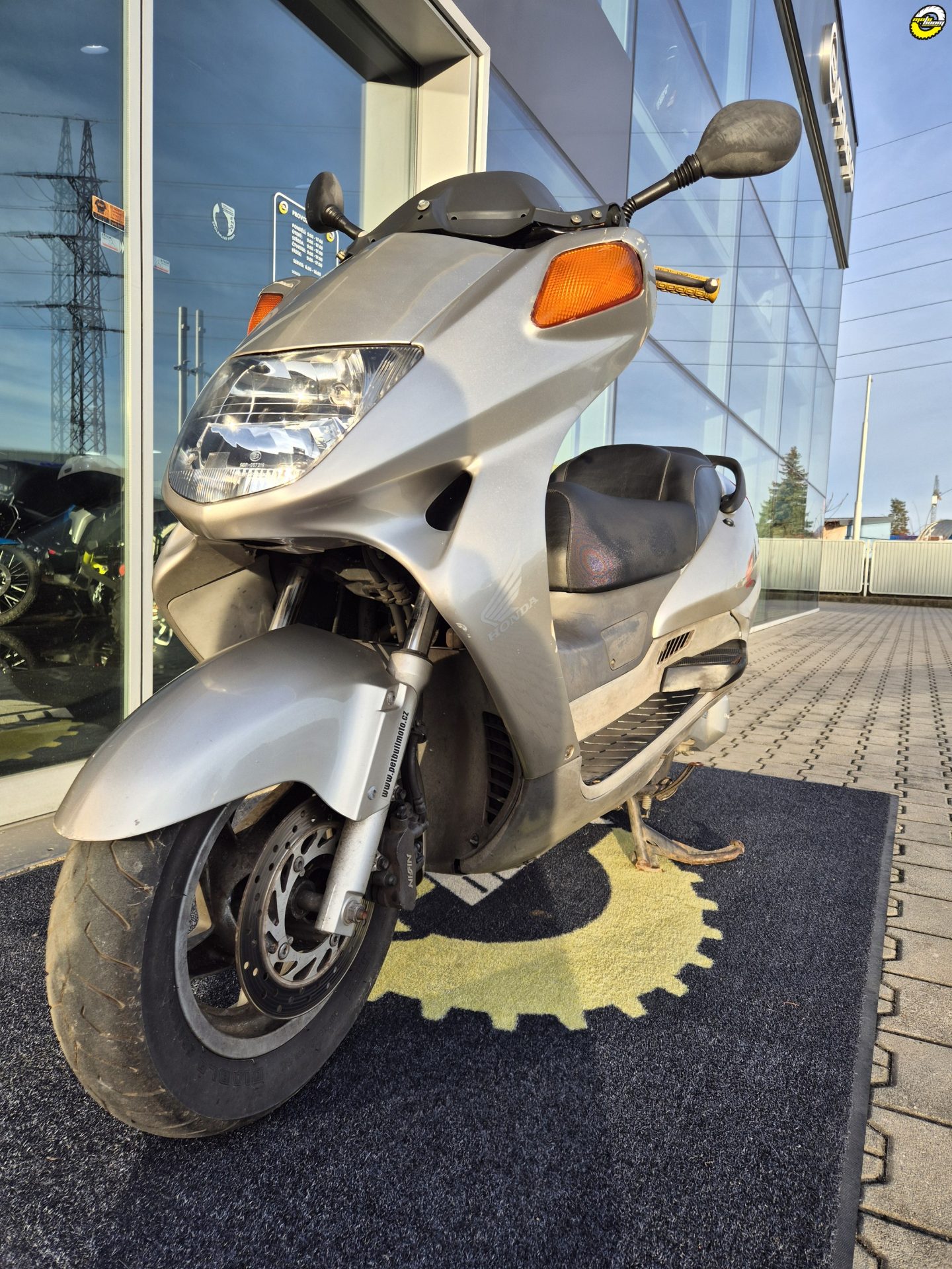 Skútr vizuálně v horším stavu, chybí plexi.