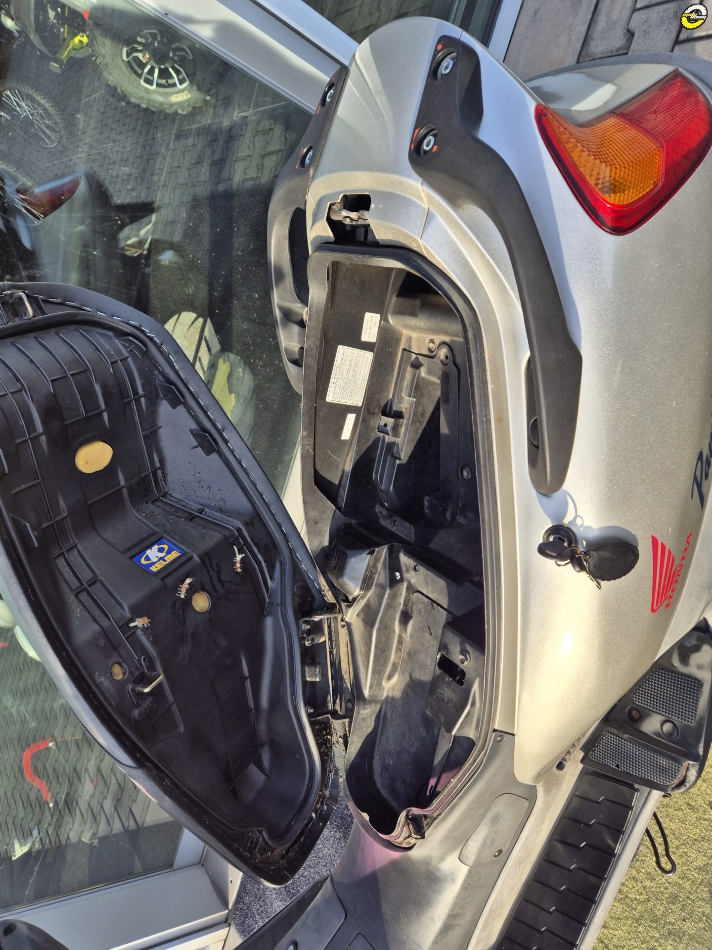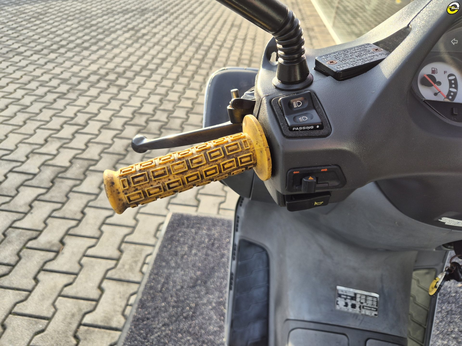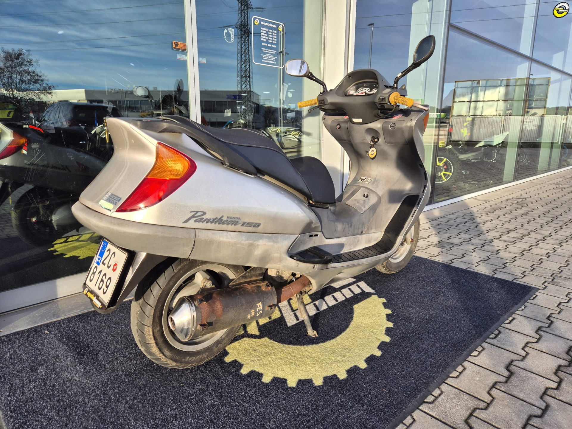 Skútr vizuálně v horším stavu, chybí plexi.