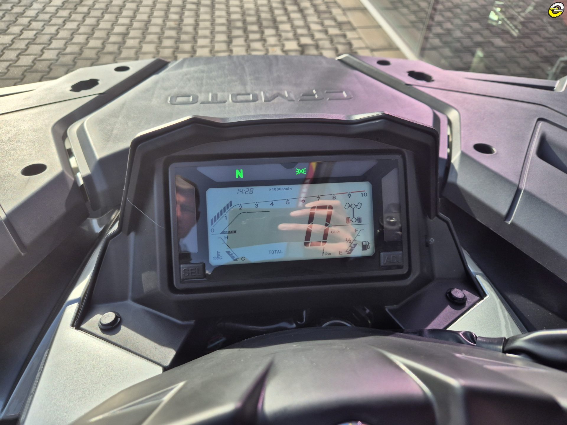 Moderní LCD displej dovoluje připojení a ovládání chytrého telefonu prostřednictvím Bluetooth technologie, zároveň dovoluje váš chytrý telefon ovládat pomocí tlačítek (příjem/ukončení hovoru). Všechny palubní údaje (12 hodnot) jsou mimořádně transparentní.