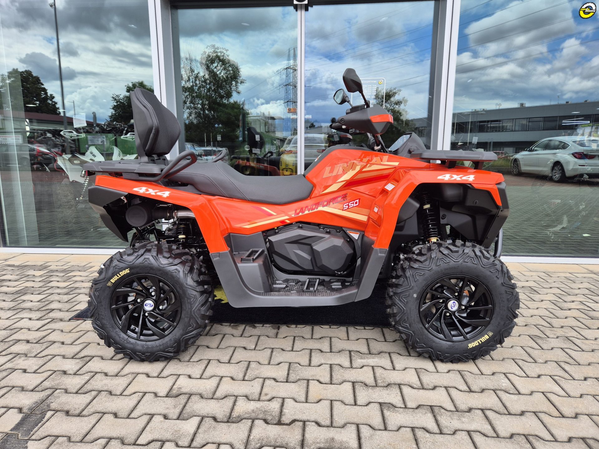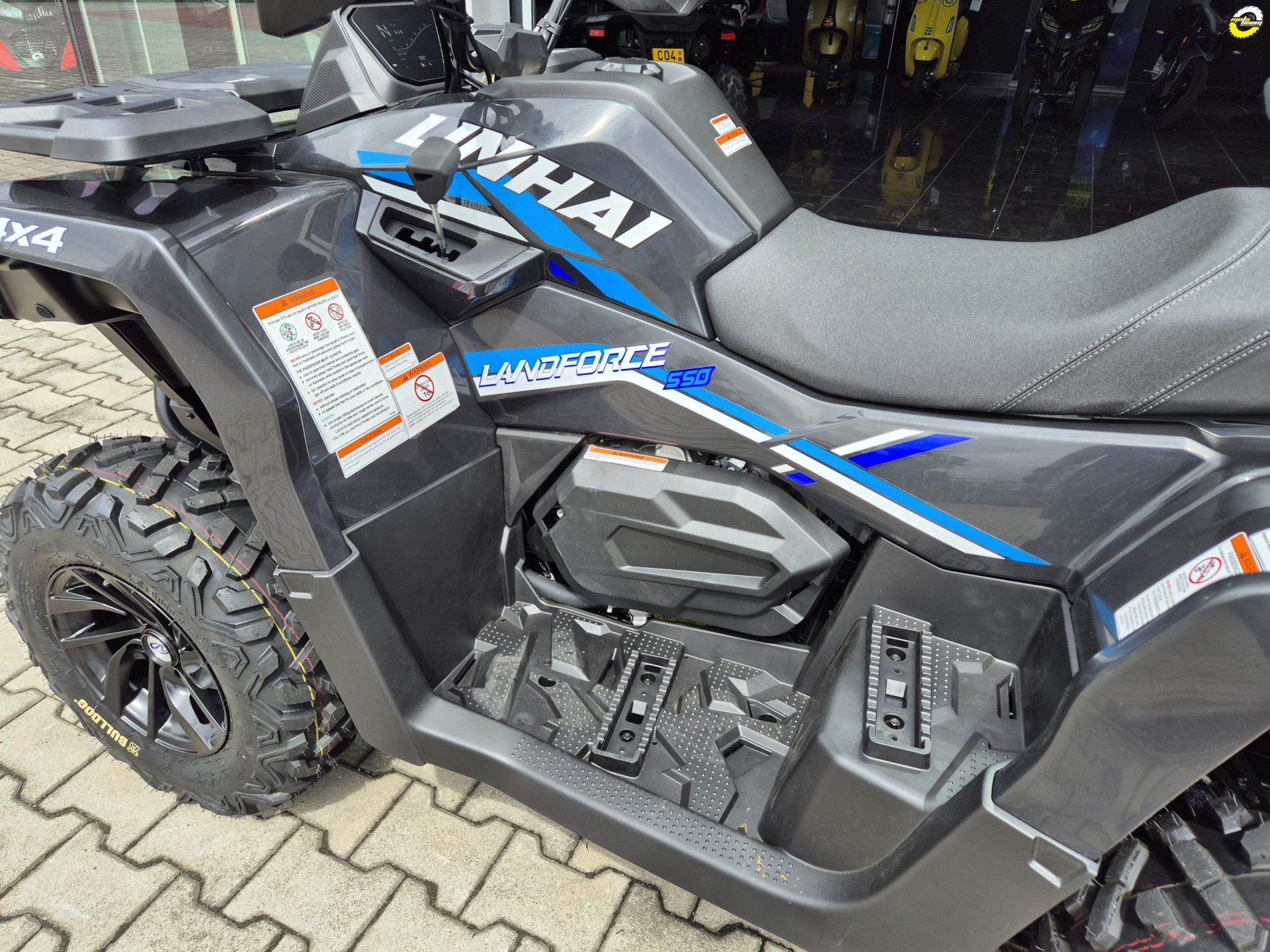 inhai Landforce 550L nabízí mimořádně bohatou výbavu, ve které nechybí atraktivní 12" litá kola se značkovými 25“ pneumatikami Bulldog, elektrický naviják 3000 lbs, homologované tažné zařízení, plnobarevný 7“ TFT displej nebo elektrický posilovač řízení EPS. Vše, co si chcete vzít s sebou, pojmou kompozitní nosiče a praktické úložné schránky. Ve výbavě najdete i chrániče rukou, 12 V zásuvku, USB port nebo pohodlné vyvýšené sedadlo spolujezdce.