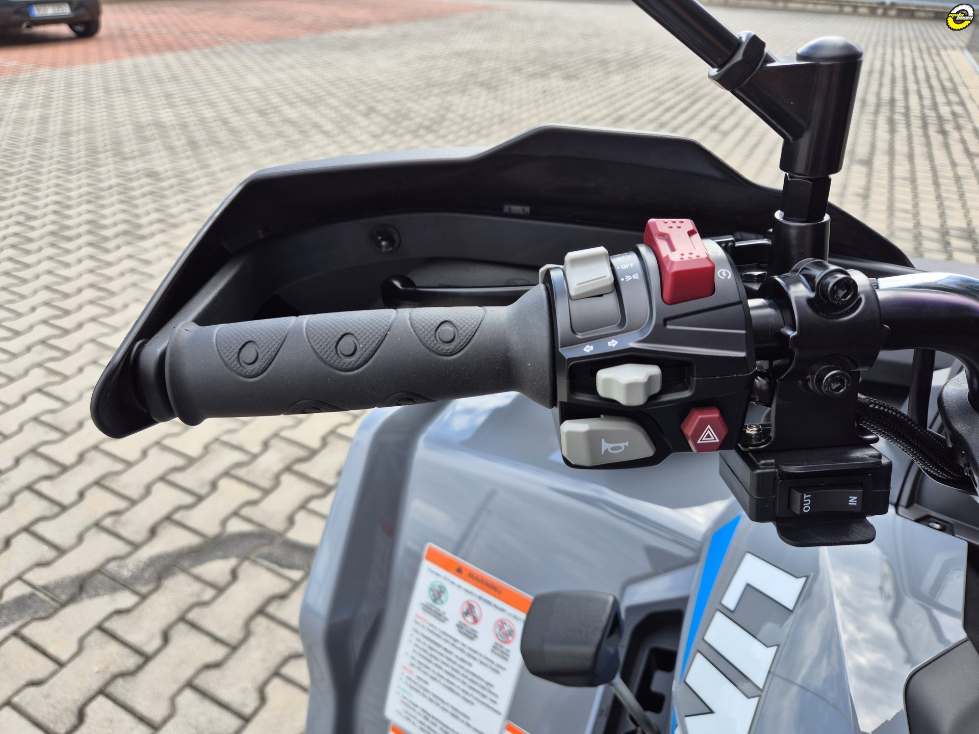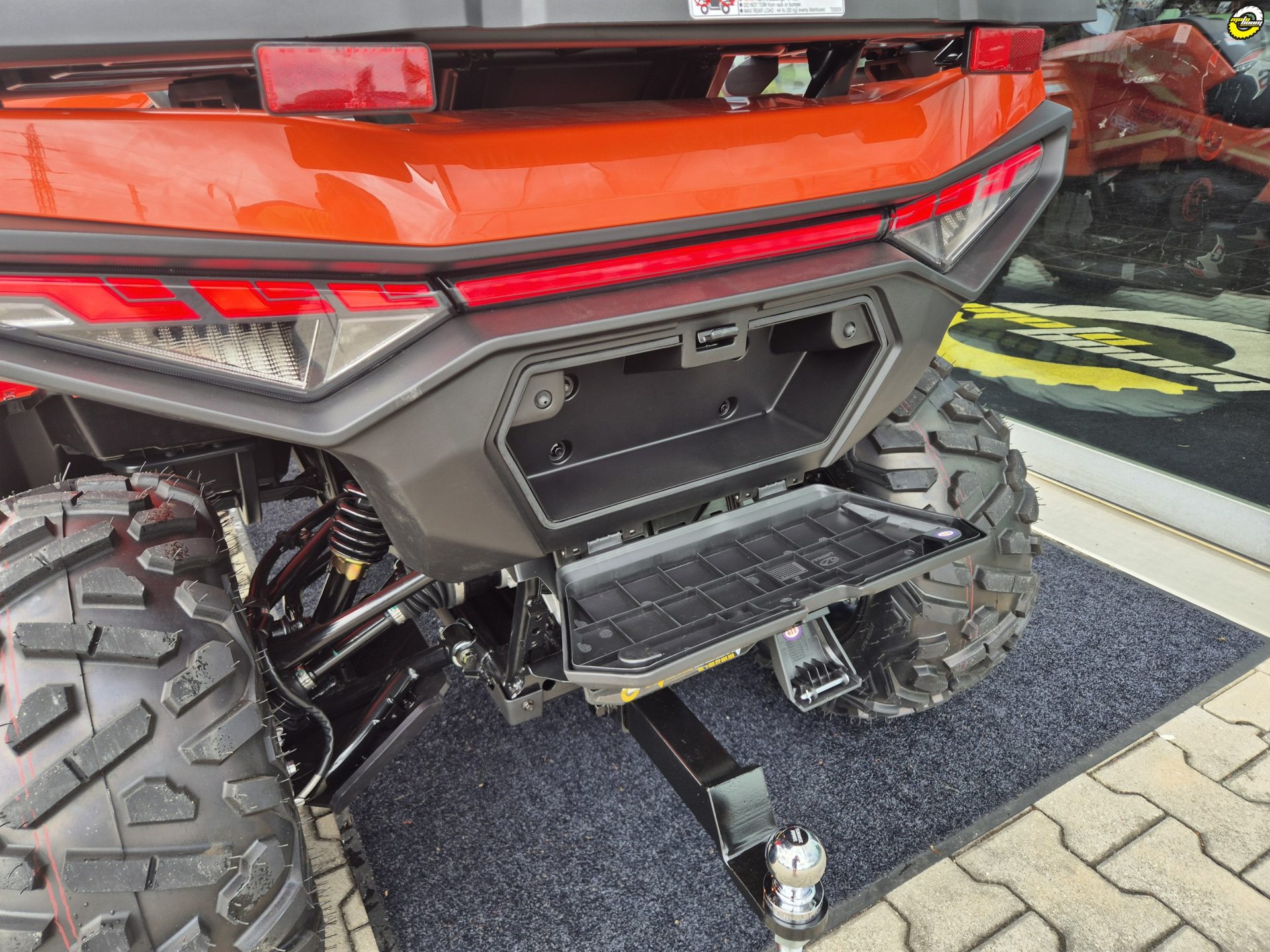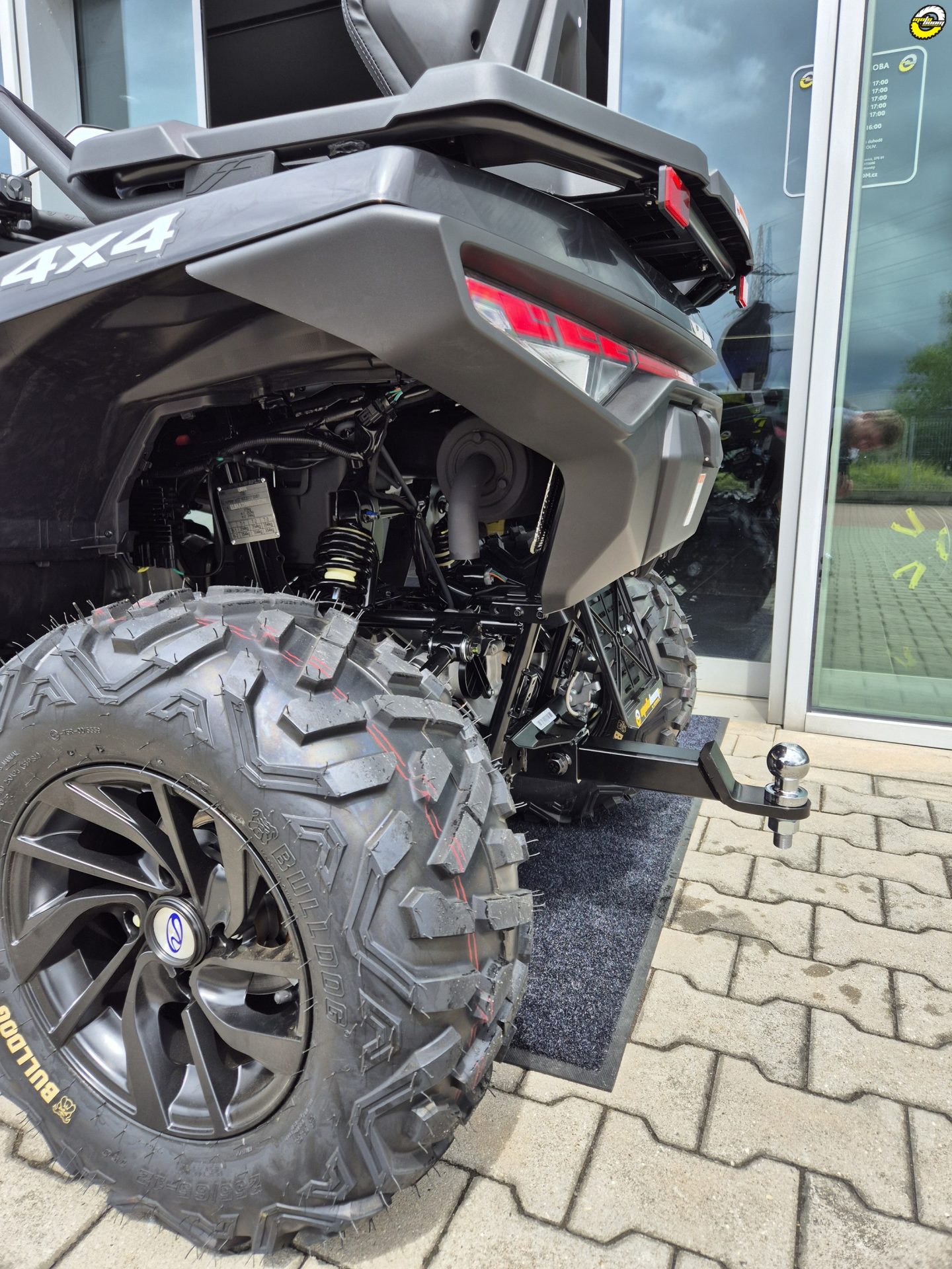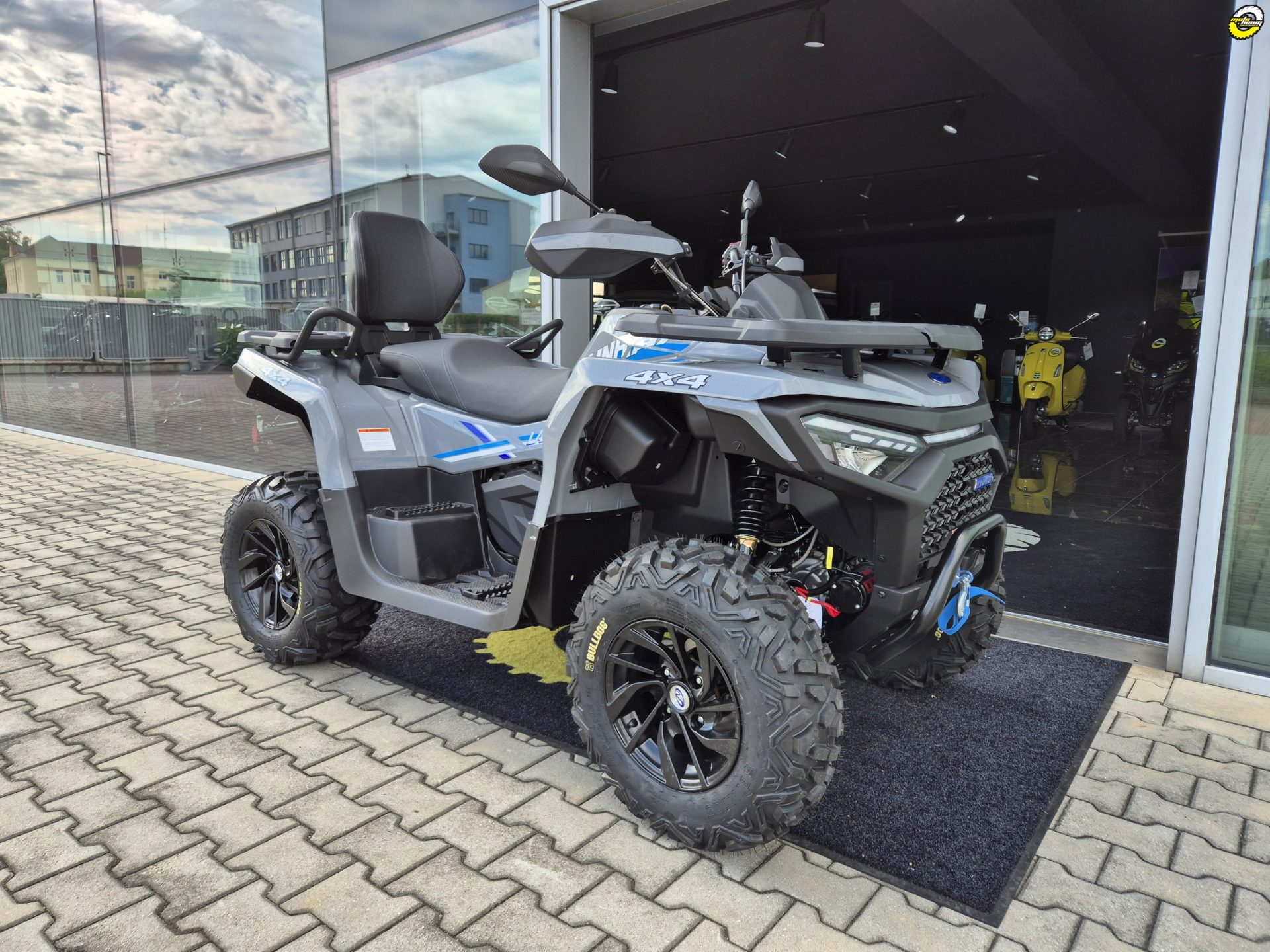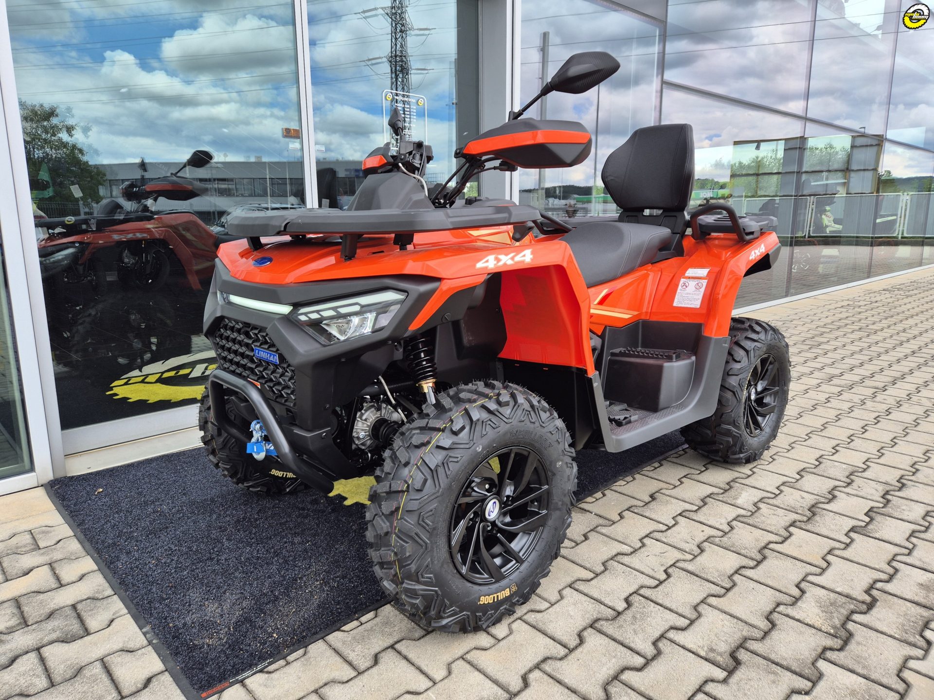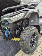 Elektrický naviják 3000lbs s nylonovým lanem, elektrický posilovač řízení EPS, homologované tažné zařízení, 12" designová ALU kola, značkové 25" pneumatiky Bulldog, kompozitní nosiče vpředu a vzadu, kryty páček a rukou, Full-LED osvětlení, plnobarevný 7“ TFT displej, 12 V zásuvka, USB port, samostatné vyvýšené sedadlo spolujezdce s opěrkou zad, madla s neklouzavým povrchem