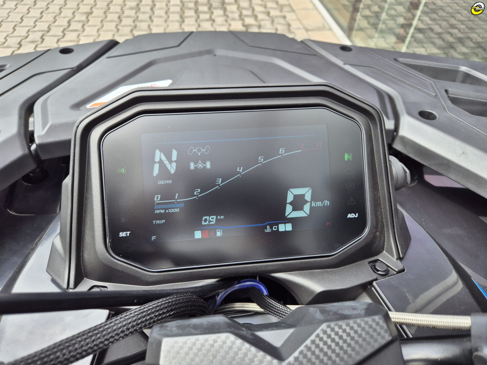 Plnobarevný 7" TFT displej s automatickým přepínáním denního a nočního režimu, funkce: rychloměr, otáčkoměr, palivoměr, hodiny, teploměr chladicí kapaliny, denní a celkové počítadlo kilometrů, ukazatele zařazené rychlosti, pohonu a výstražné kontrolky