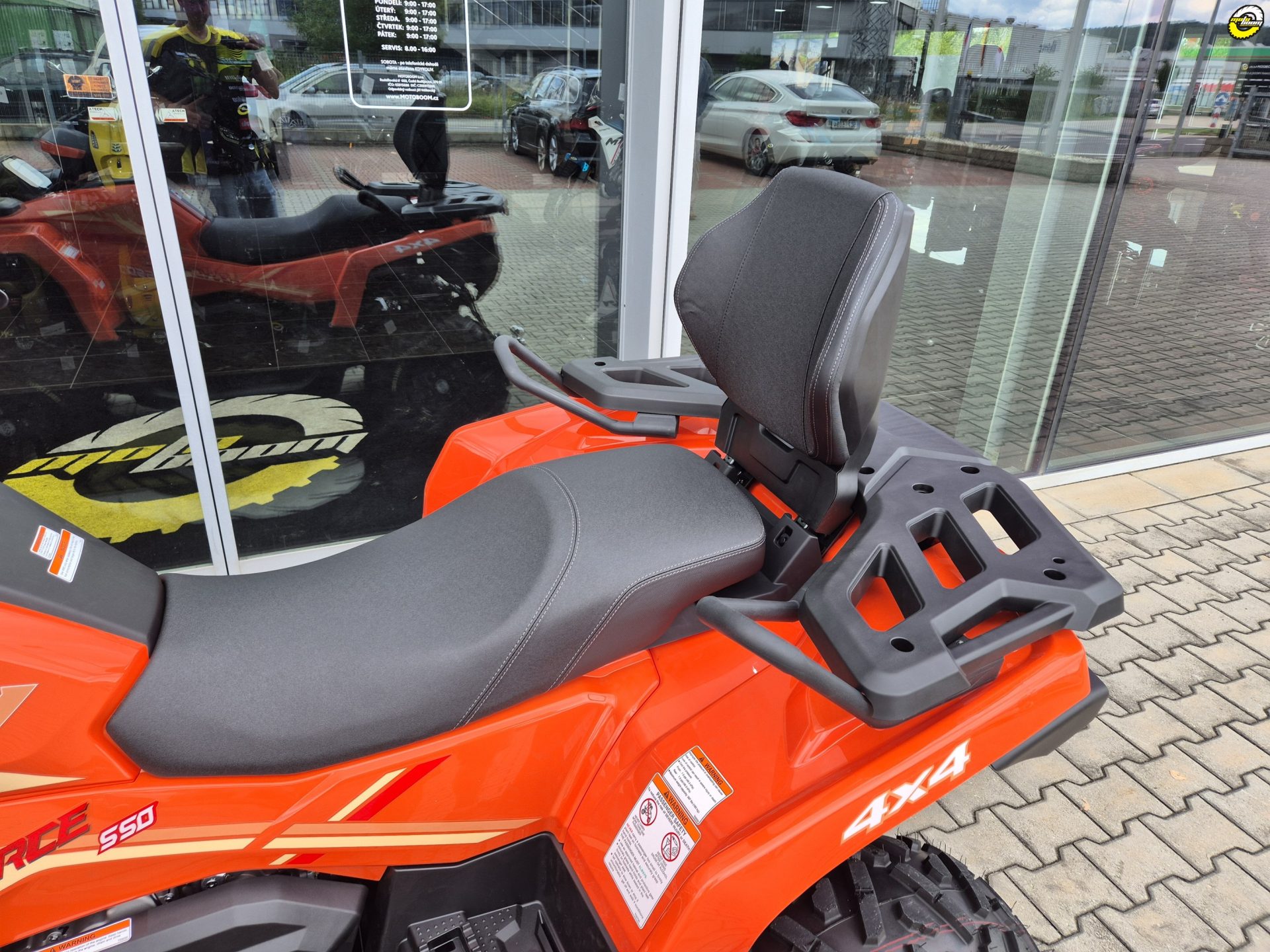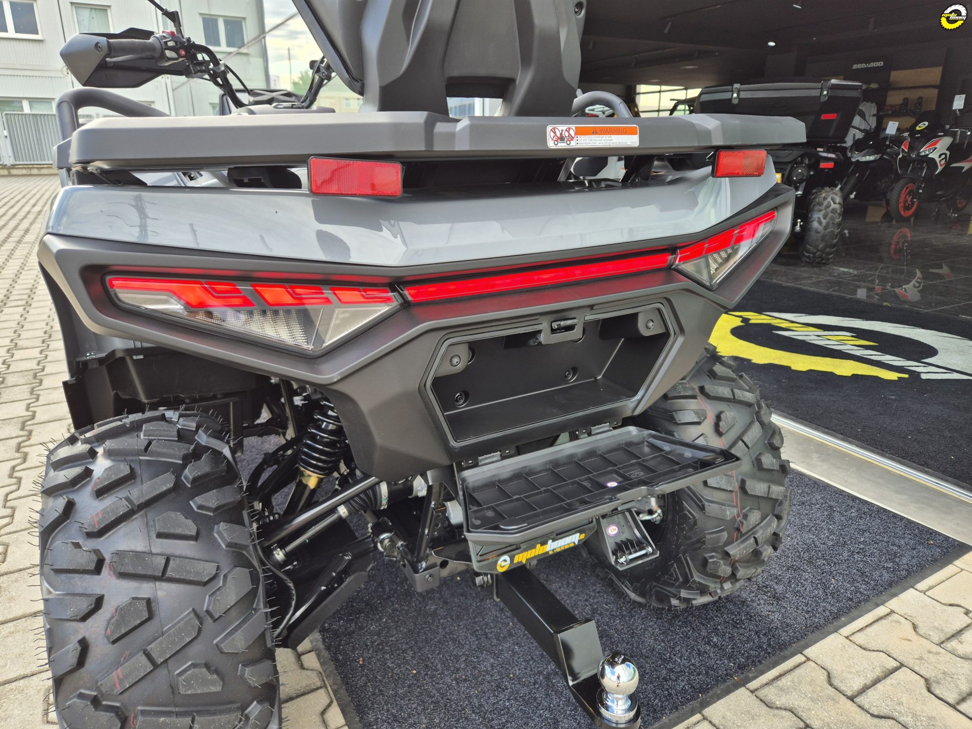inhai Landforce 550L nabízí mimořádně bohatou výbavu, ve které nechybí atraktivní 12" litá kola se značkovými 25“ pneumatikami Bulldog, elektrický naviják 3000 lbs, homologované tažné zařízení, plnobarevný 7“ TFT displej. Vše, co si chcete vzít s sebou, pojmou kompozitní nosiče a praktické úložné schránky. Ve výbavě najdete i chrániče rukou, 12 V zásuvku, USB port nebo pohodlné vyvýšené sedadlo spolujezdce.