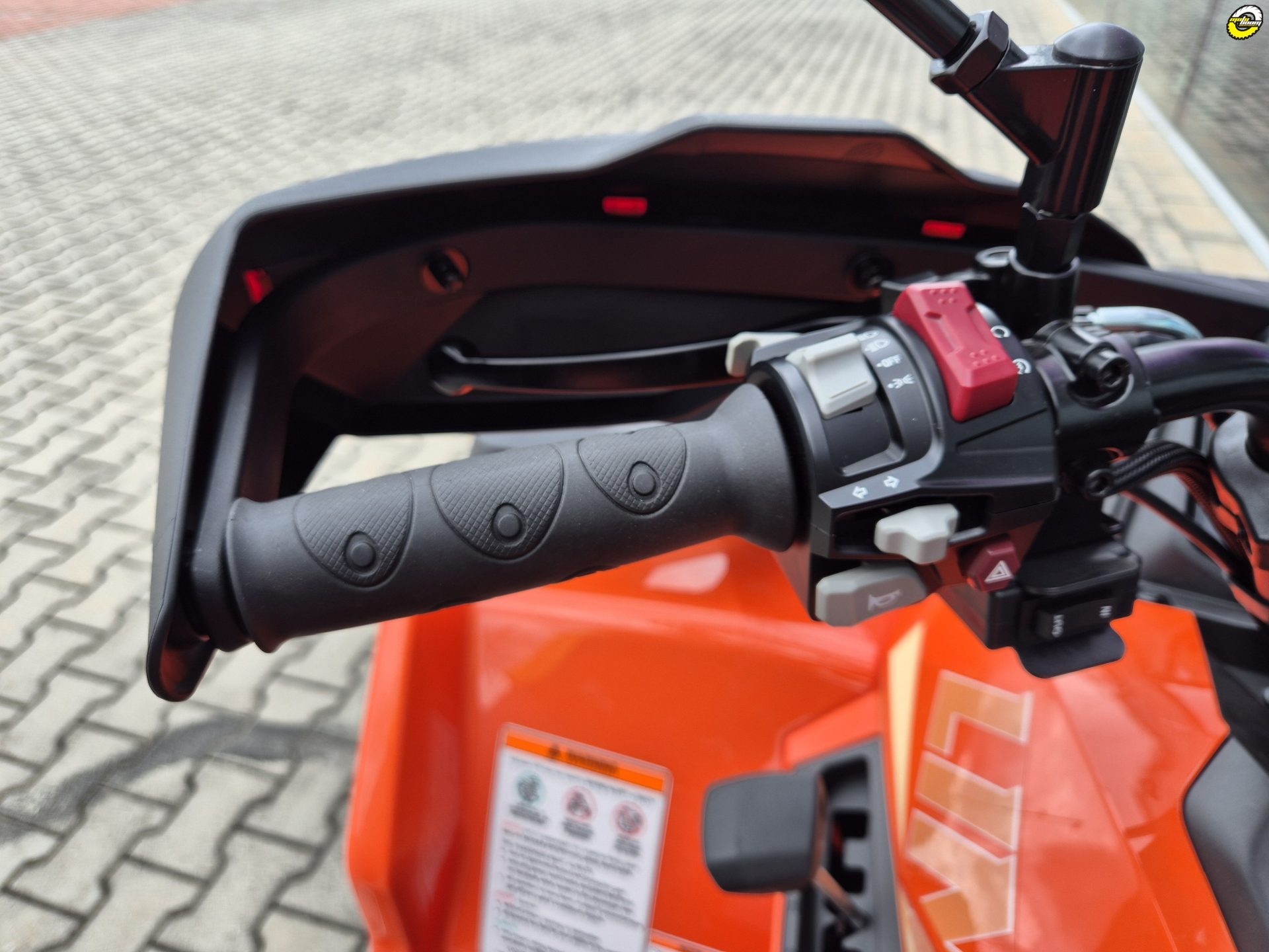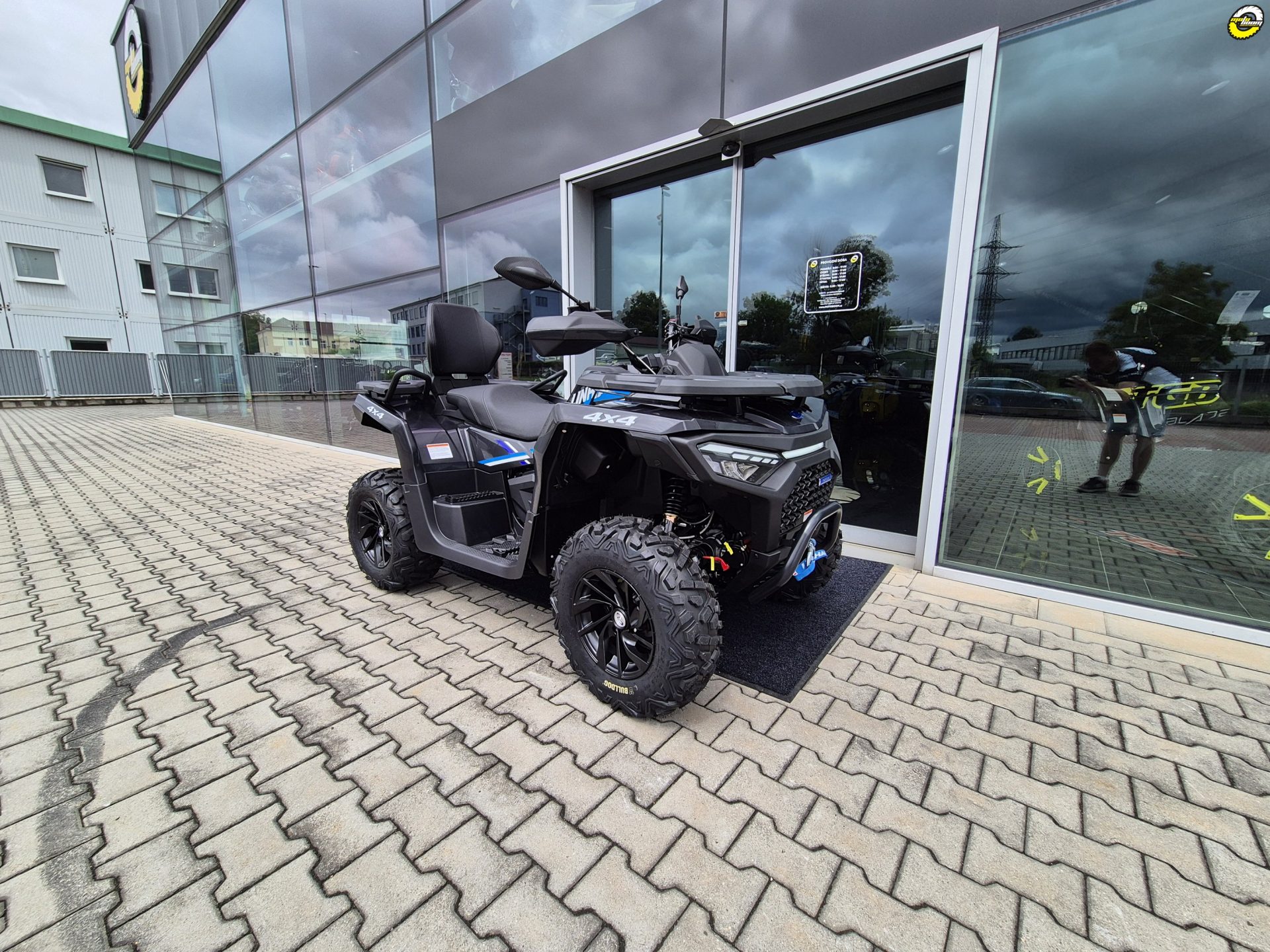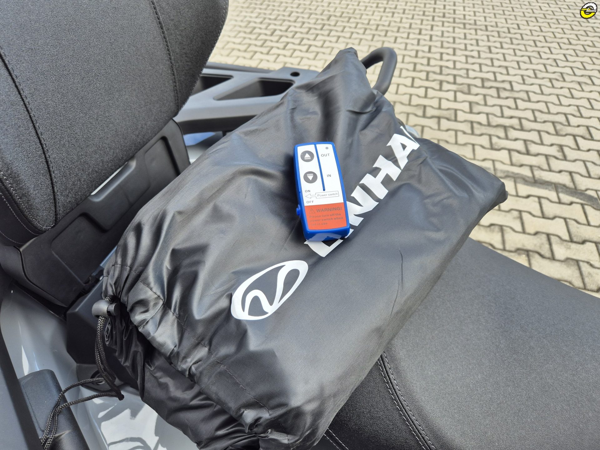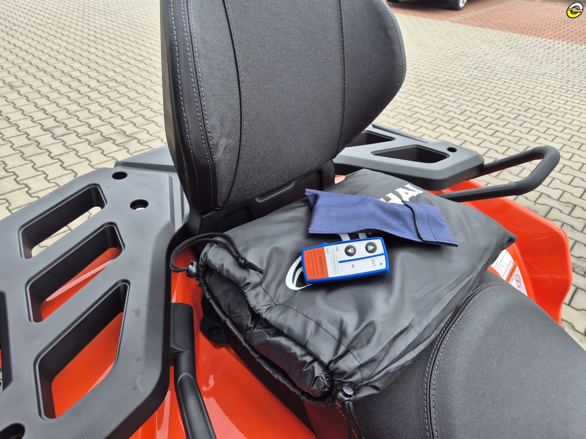 Elektrický naviják 3000lbs s nylonovým lanem, homologované tažné zařízení, 12" designová ALU kola, značkové 25" pneumatiky Bulldog, kompozitní nosiče vpředu a vzadu, kryty páček a rukou, Full-LED osvětlení, plnobarevný 7“ TFT displej, 12 V zásuvka, USB port, samostatné vyvýšené sedadlo spolujezdce s opěrkou zad, madla s neklouzavým povrchem