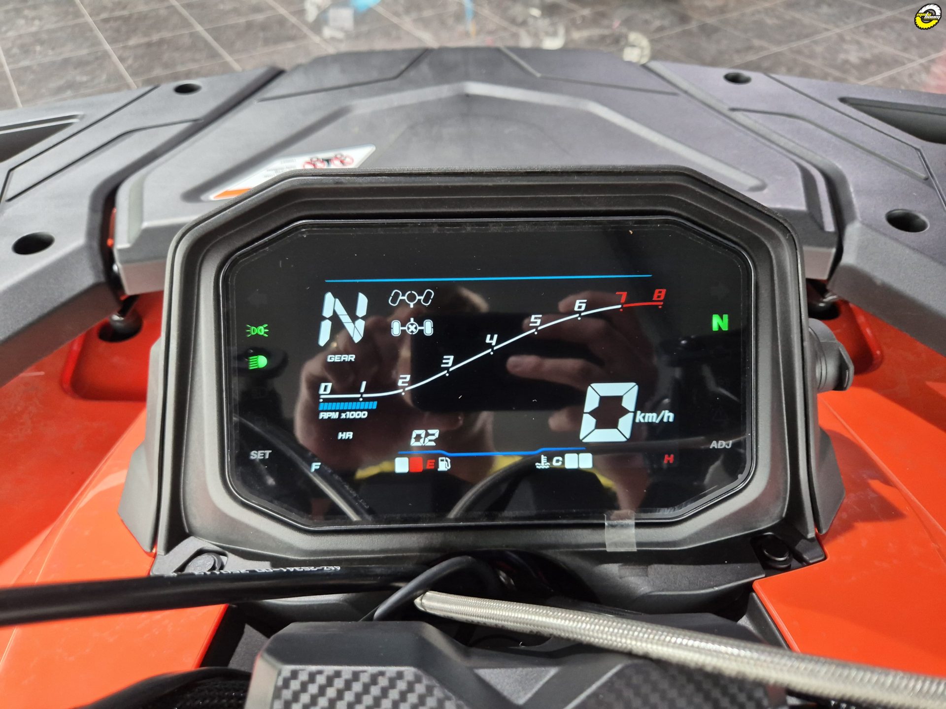 Špičkový 7palcový TFT displej automaticky přepíná denní a noční režim podle světelných podmínek, a ve vysokém rozlišení přehledně zobrazuje všechny důležité informace o rychlosti, otáčkách, teplotě motoru nebo stavu paliva. Nechybí ukazatel zařazené rychlosti, zvoleného pohonu nebo jízdního režimu.