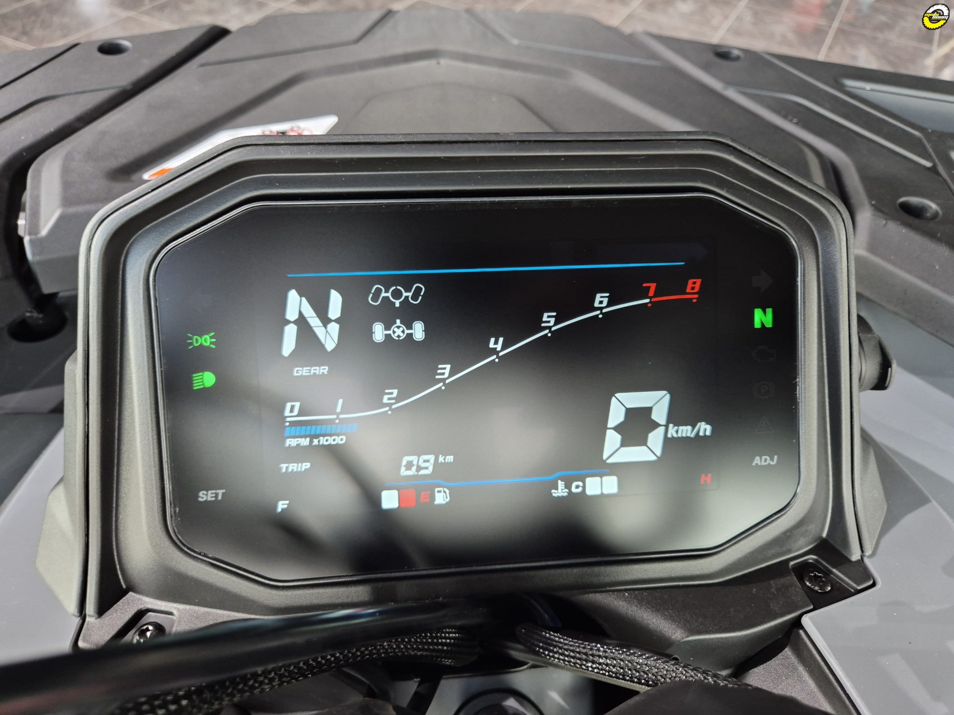 Plnobarevný 7" TFT displej s automatickým přepínáním denního a nočního režimu, funkce: rychloměr, otáčkoměr, palivoměr, hodiny, teploměr chladicí kapaliny, denní a celkové počítadlo kilometrů, ukazatele zařazené rychlosti, pohonu a výstražné kontrolky