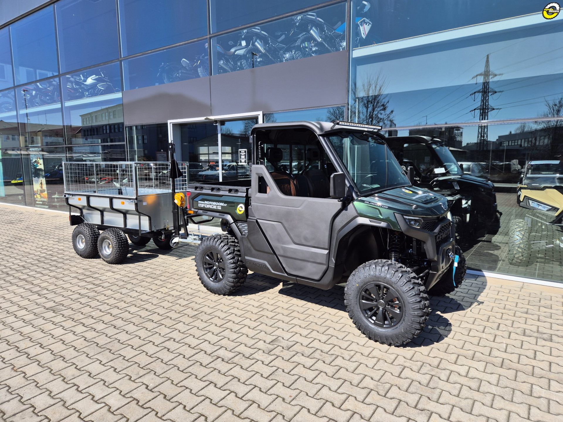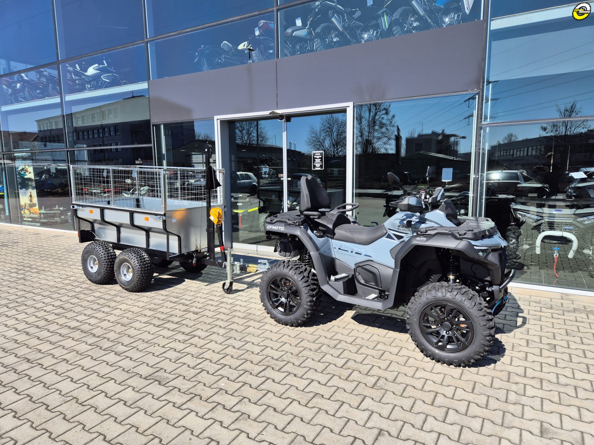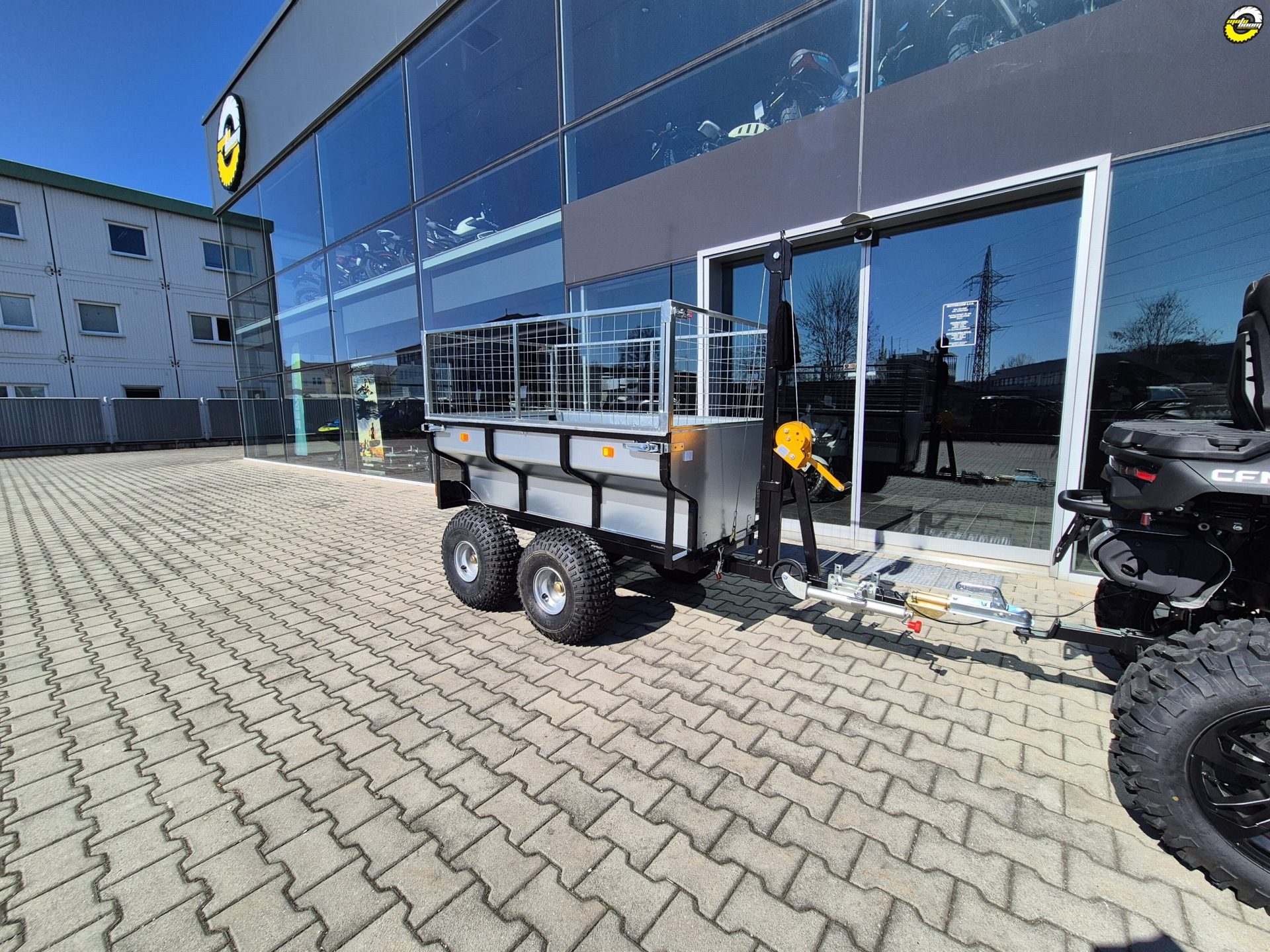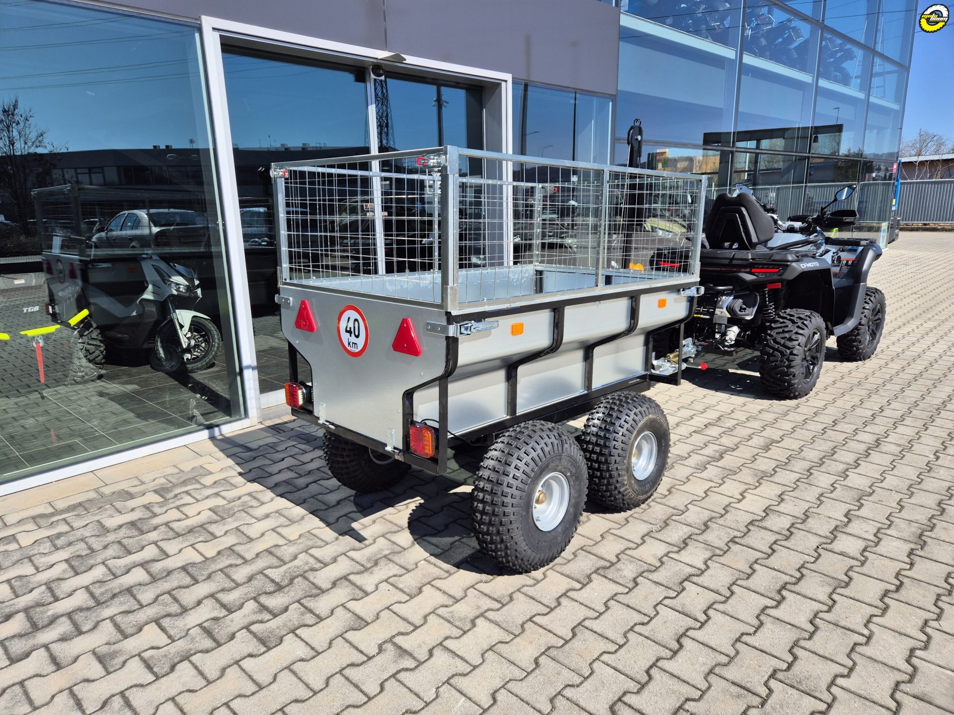 Velkoobjemový dvounápravový vozík se sklopnou ocelovou korbou, zvýšenými bočnicemi a otočnou ojí z řady profesionálního příslušenství QuadKit. Vhodný za čtyřkolku, UTV, SSV i traktůrek pro pracovní nasazení například na farmě, v lese nebo na stavbě. Nosnost dle použitých pneumatik až 1420 kg.