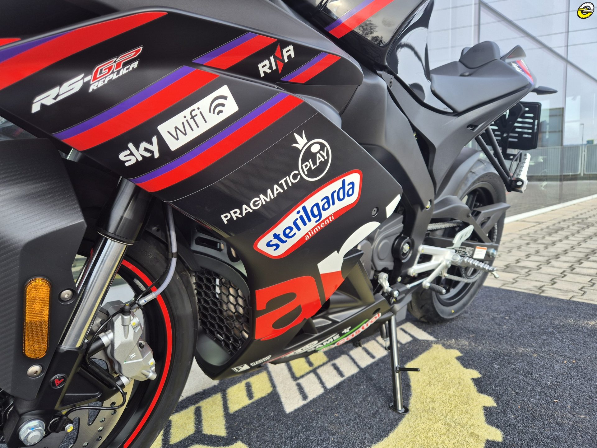 Závodní vzhled RS 125 GP Replica s červenou a fialovou grafikou je přímo inspirován sportovní DNA týmu Aprilia Racing. Používá přesně stejné barvy a detaily jako RS-GP25, na kterém v MotoGP jezdí Jorge Martín a Marco Bezzecchi.
