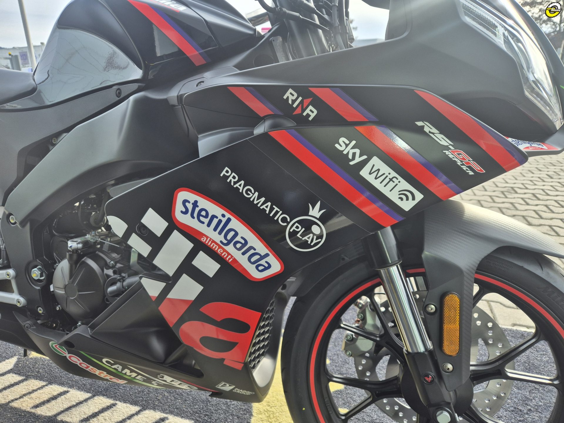 RS 125 GP Replica se může pochlubit agresivním vzhledem, který okamžitě prozrazuje její závodní duši. Grafika inspirovaná modelem RS-GP25 společně s, pro Aprilii typickými trojitými full LED předními světly sportovních motorek, upoutá pozornost na první pohled a vyzařuje čistý adrenalin. Matná černá kyvná vidlice a rám spolu s krytem sedadla spolujezdce ještě více zdůrazňují exkluzivitu tohoto stroje – každý detail je navržen tak, aby přinesl atmosféru závodů přímo na cestu.