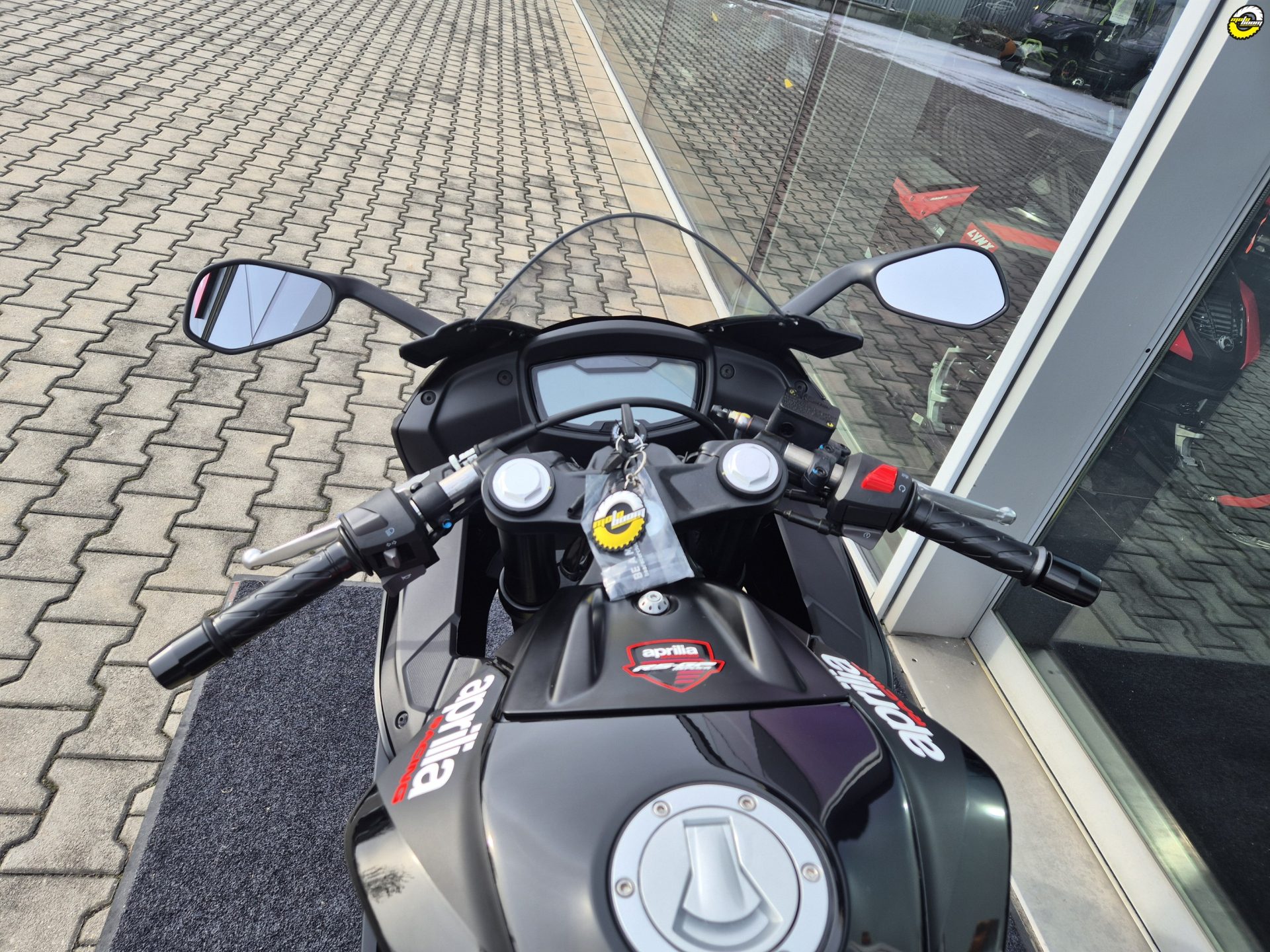Panel je zároveň připraven pro propojení se systémem Aprilia MIA (dostupným jako doplňková výbava), který umožní snadno ovládat telefonní hovory, zprávy, hudbu nebo údaje o jízdě – pro ještě propojenější a modernější jízdu.