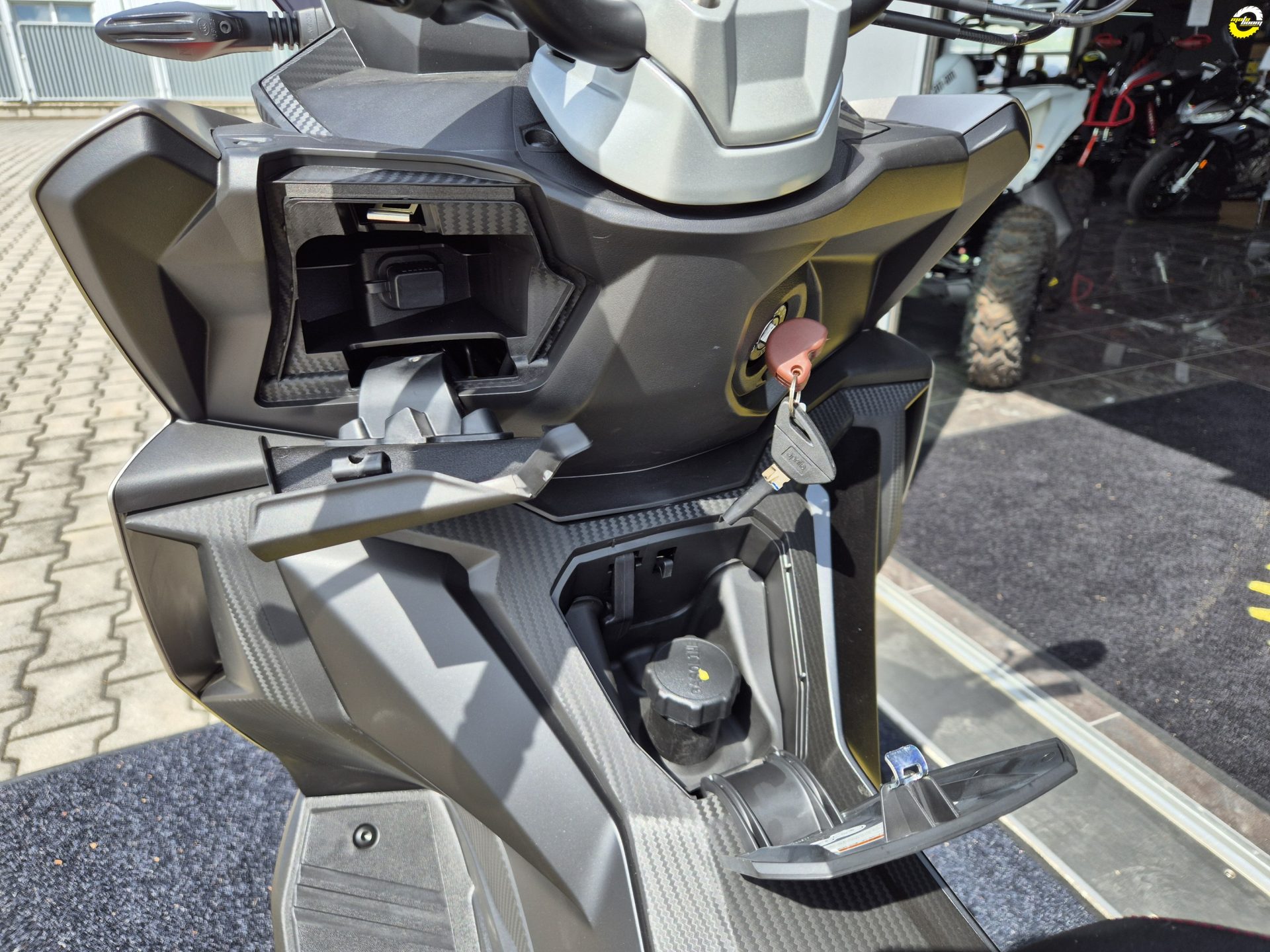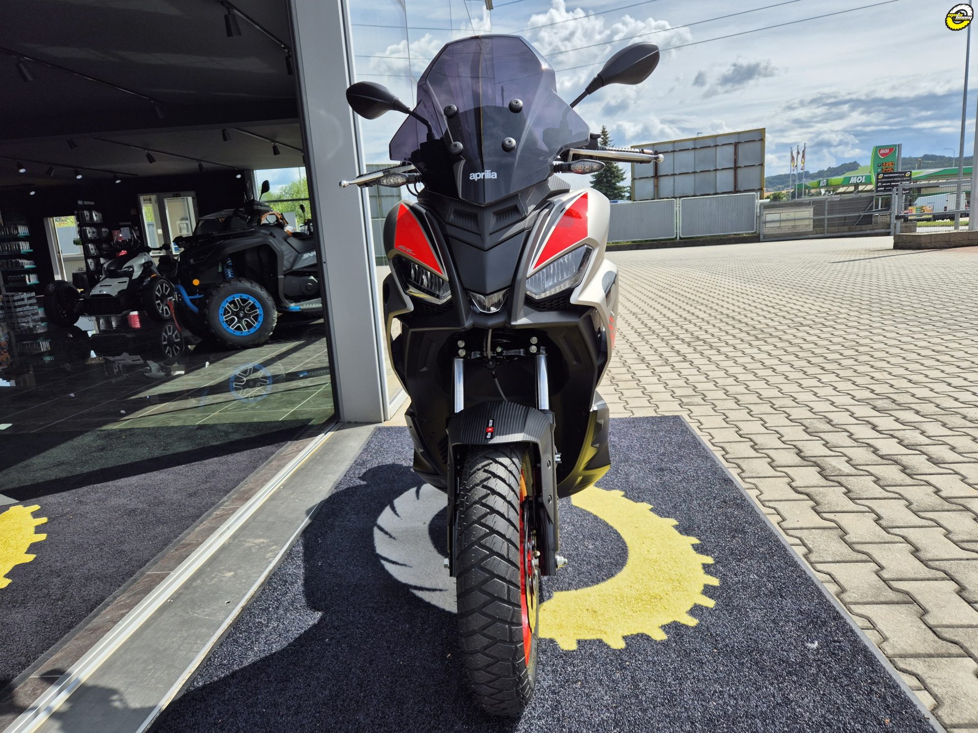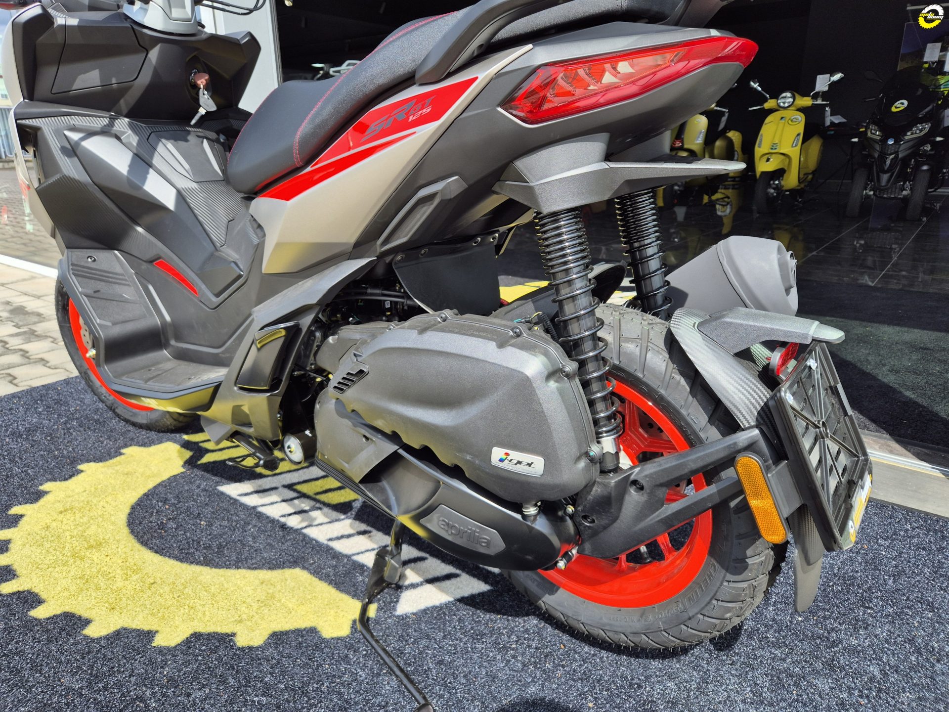SR GT svým stylem vybízí k akci a zábavě, ale díky 25 litrovému podsedlovému prostoru, do kterého se vejde celá přilba, se skvěle hodí i pro jízdu po městě. V zadní desce štítu nohou je také praktický USB port a pokročilý přístrojový panel LCD. Pokud si zvolíš volitelnou výbavu Aprilia MIA, můžeš svůj telefon připojit přes Bluetooth k ovládacím prvkům na řídítkách.