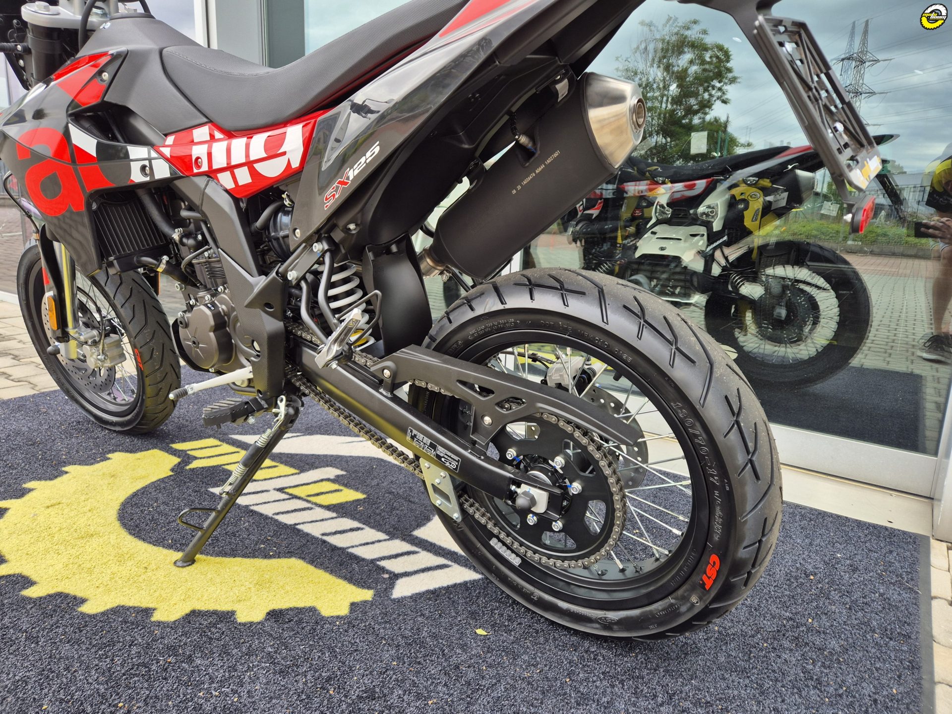 Aprilia SX je vybavena 17" koly a sportovními pneumatikami velkých rozměrů - 100/80-17" a 130/70-17" - pro maximální přilnavost za všech podmínek.