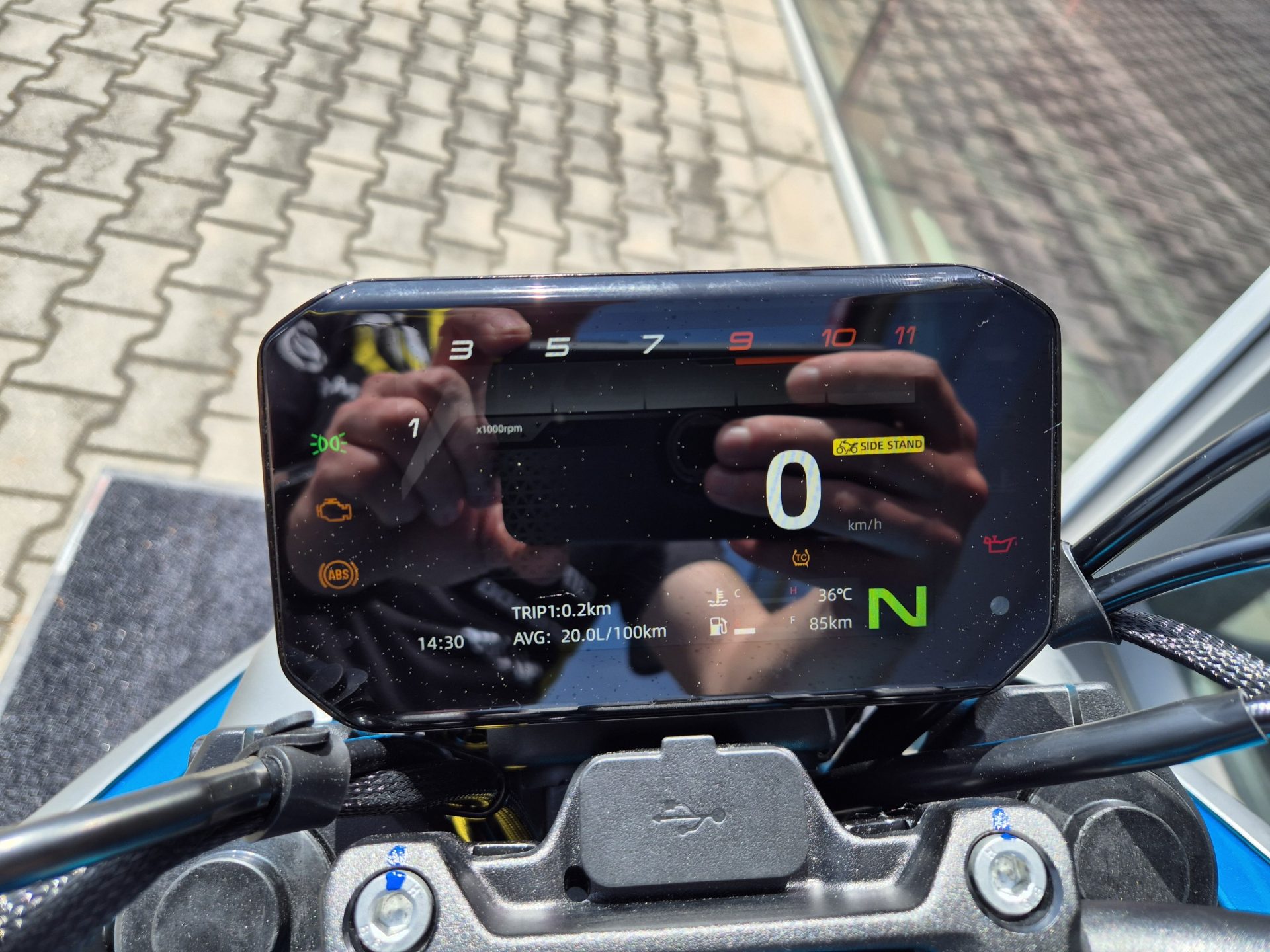 125NK je standardně vybaveno komunikační jednotkou T-Box, která zajišťuje přenos dat z motocyklu do mobilní aplikace CFMOTO Ride. Díky tomu máte k dispozici informaci o poloze a stavu motocyklu. V aplikaci také naleznete záznam vašich jízd s promítnutím na mapě a detailní údaje každé jízdy (vzdálenost, dobu jízdy, průměrnou rychlost, maximální rychlost a další).