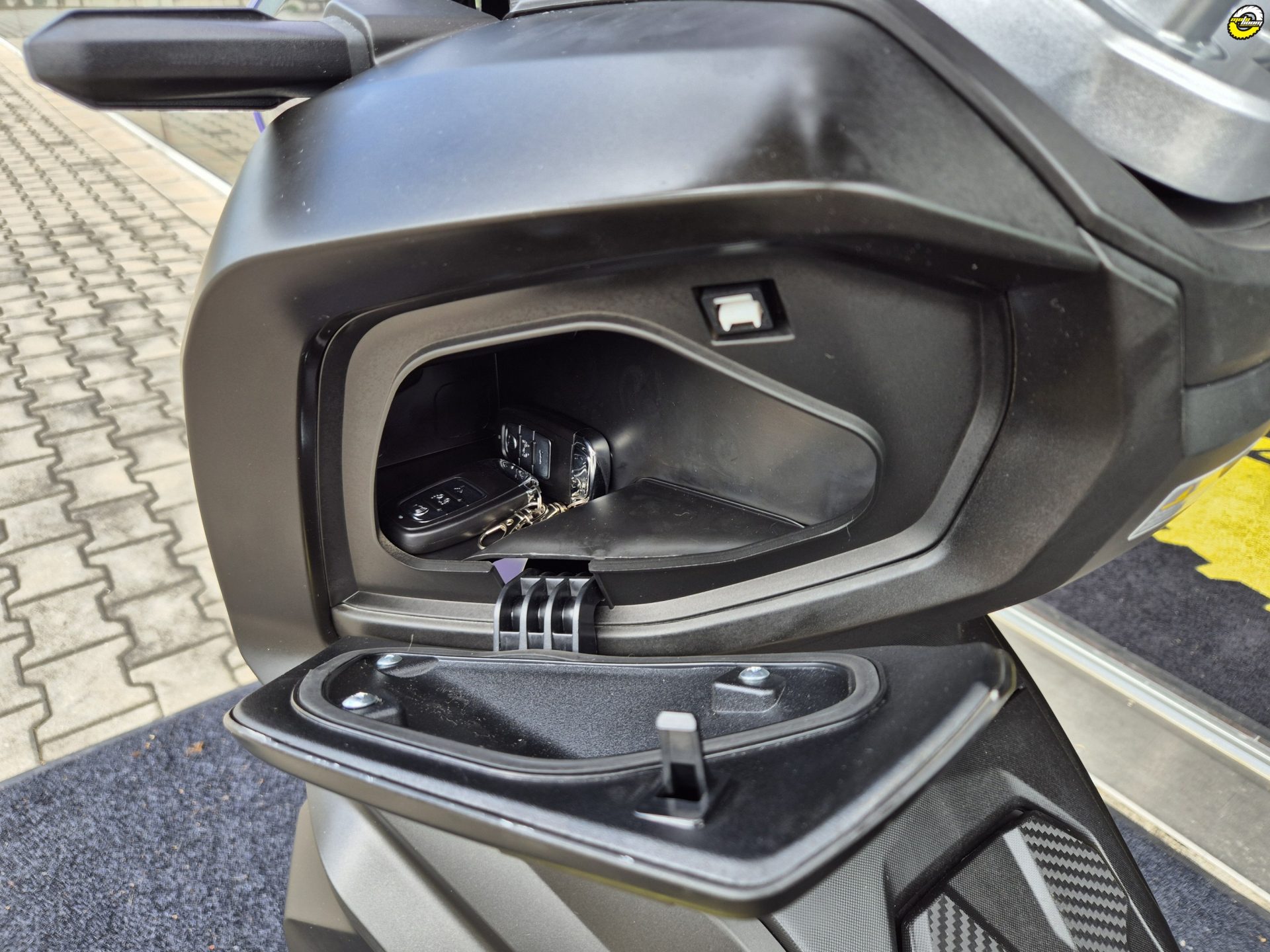 Protiblokovací sytém ABS, kontrola trakce TCS, full-LED osvětlení, podsvícené řídítkové přepínače, bezklíčkové startování Keyless system, praktický zadní kufr, velké přední plexi, podsedlový prostor pro jednu integrální přilbu, USB port, elektrické otevírání sedadla a palivové nádrže
