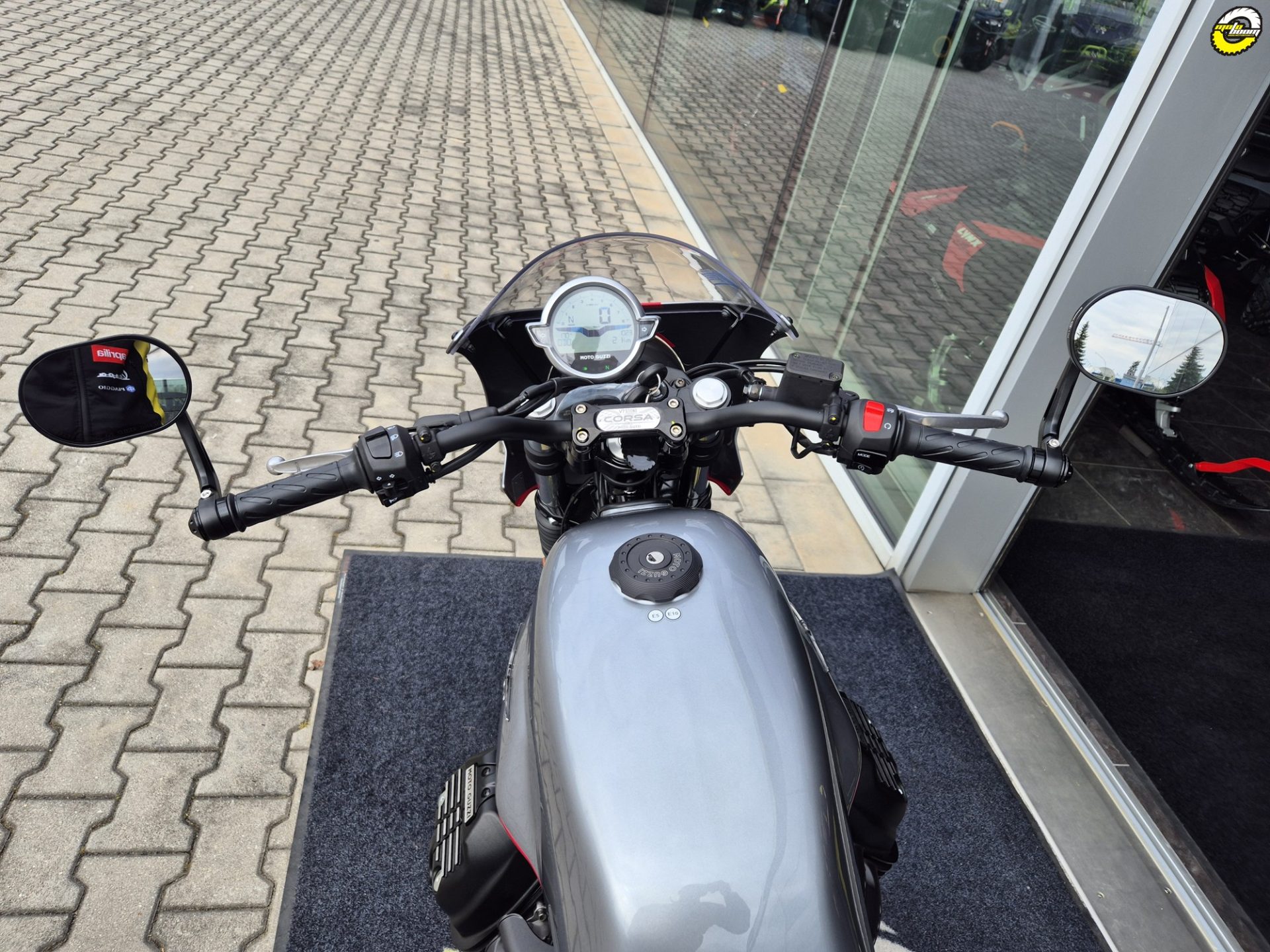 V7 Stone Corsa v sobě spojuje moderní technologie s fascinující historií, což je kombinace symbolizovaná logem speciální edice na řídítkách.