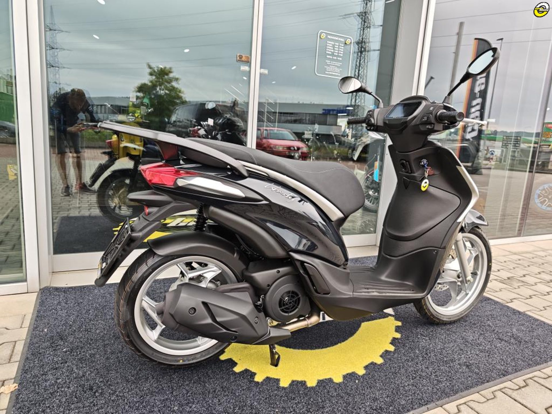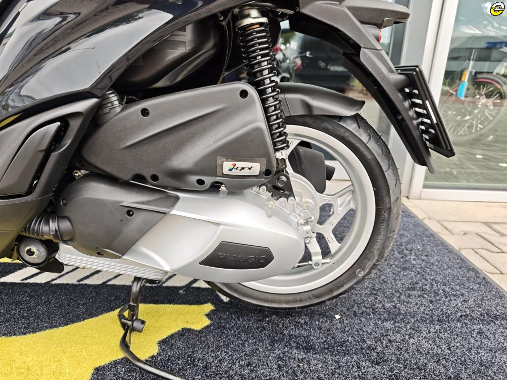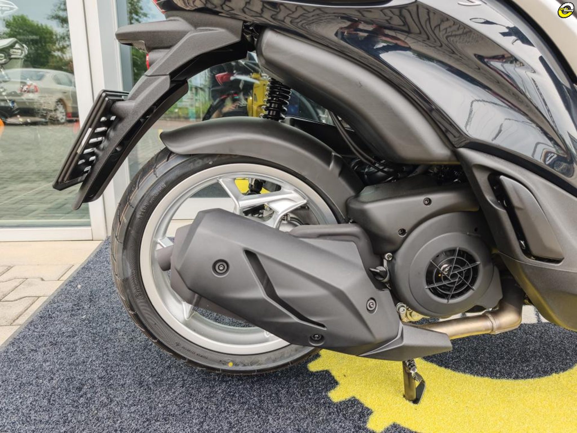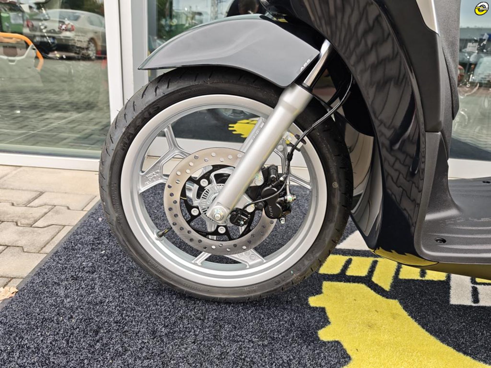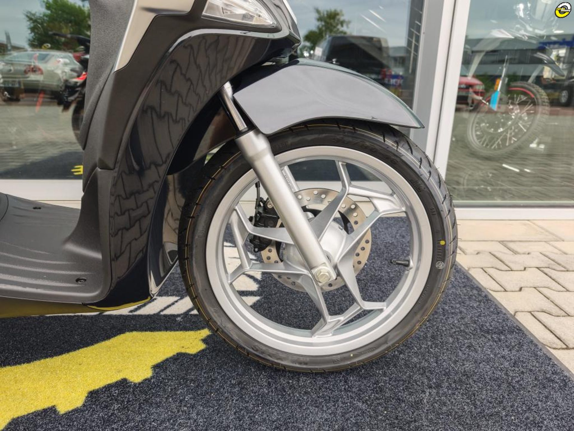 S Piaggio Liberty máš jízdu vždy plně pod kontrolou. Brzdový systém s 240mm předním kotoučem a 140mm zadním bubnem zajišťuje rychlou a účinnou odezvu. Kola s dělenými třemi paprsky – 16palcová vpředu a 14palcová vzadu – obutá do pneumatik 90/80 a 100/80 spolehlivě pohlcují nerovnosti vozovky a poskytují maximální pohodlí při jízdě.