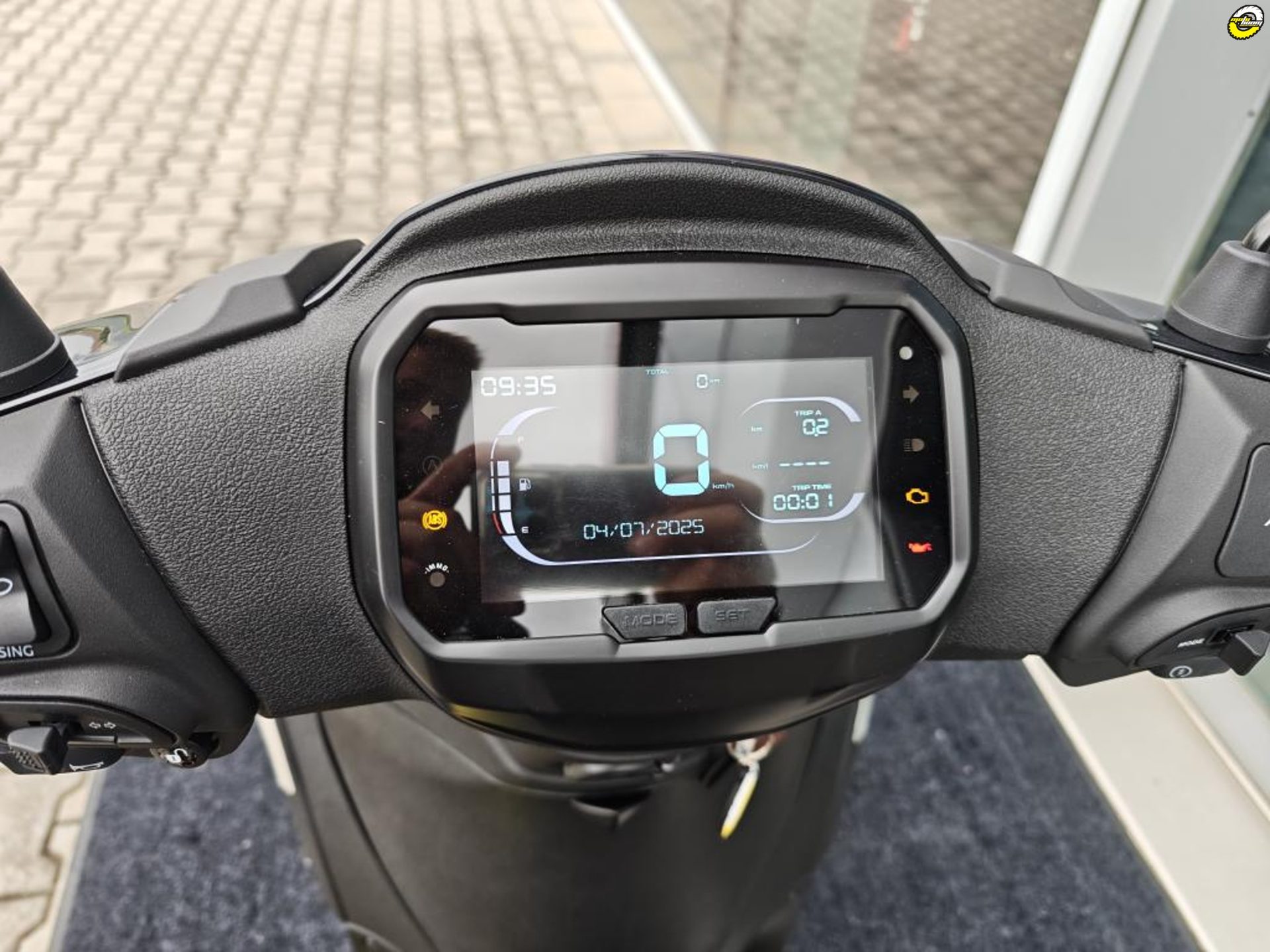 Digitální přístrojový panel s 5,5palcovým barevným LCD displejem se snadno ovládá pomocí tlačítka Mode na řídítkách. Automaticky se přepíná mezi denním a nočním režimem, takže máš vždy přehled o spotřebě paliva, ujetých trasách a všech funkcích Piaggio Liberty.