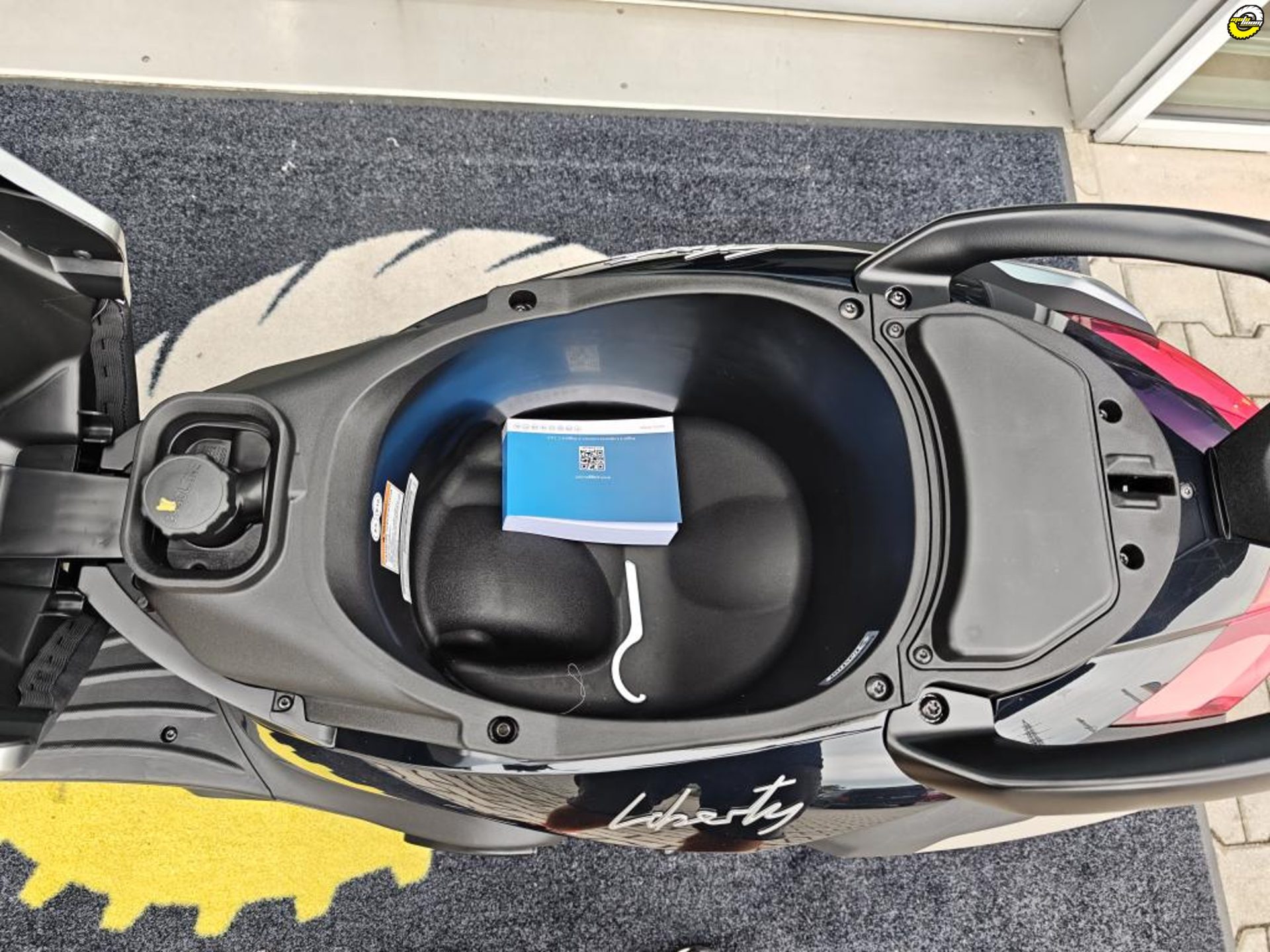 Piaggio Liberty je dokonalý skútr pro rychlé a bezpečné přesuny městem. Vysoce odolný ocelový rám, velké přední kolo a optimalizovaná ergonomie zajišťují pohodlnější a bezpečnější jízdu než kdy dřív. Pokud hledáš spolehlivý dopravní prostředek pro každodenní cestování, Liberty je ideální volbou. Čtyřtaktní vzduchem chlazený jednoválcový motor i-get s homologací Euro 5+ a precizně vyladěným elektronickým vstřikováním nabízí plynulý výkon a nízkou spotřebu pouhých 2,5 litru na 100 km (WTMC). Zkrátka, obratný a bezpečný skútr s velkými koly, připravený zvládnout každodenní výzvy městského provozu.