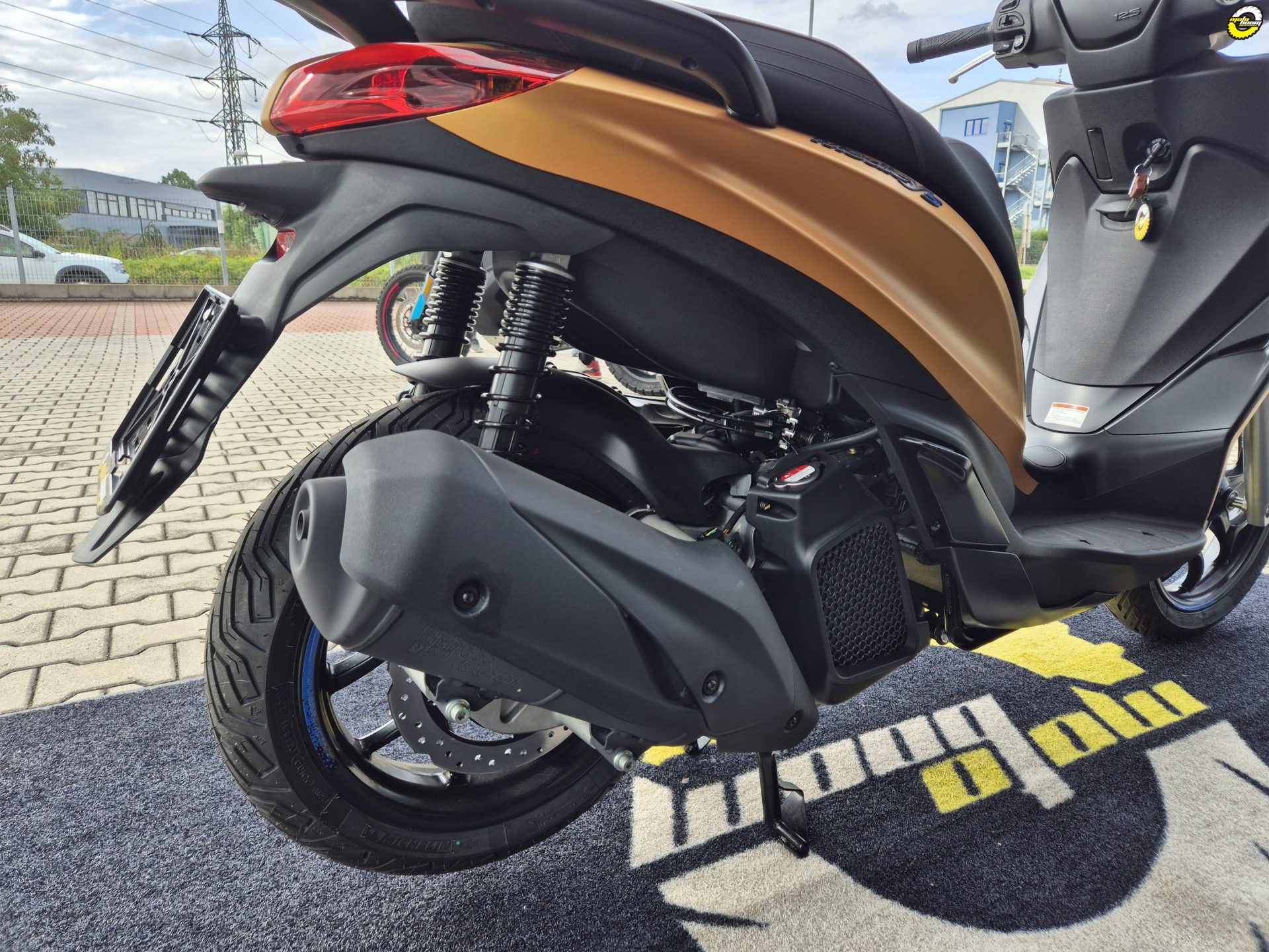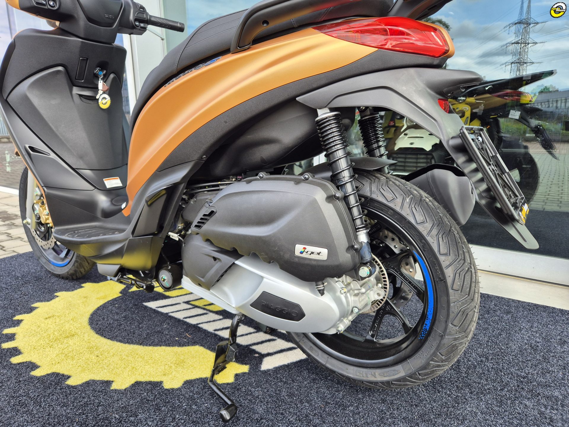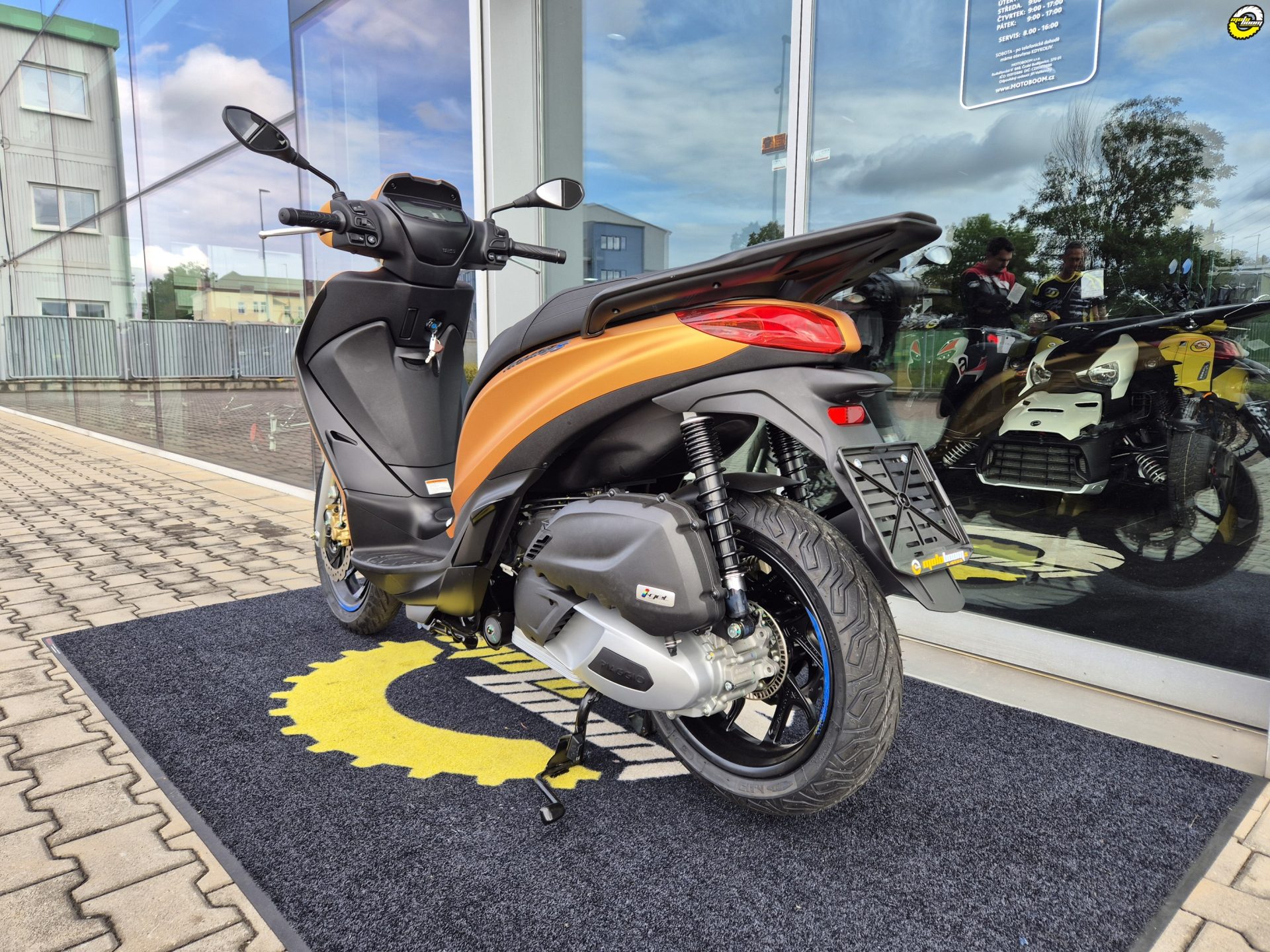 Nadčasová spolehlivost Piaggia se naplno projevuje ve čtyřtaktním jednoválcovém motoru Euro5+. Díky chlazení kapalinou a elektronickému vstřikování paliva máš záruku stabilní a citlivé jízdy za všech okolností. S maximálním výkonem téměř 15 k a systémem Start& Stop nabízí plynulé ovládání, vysokou účinnost a tichý provoz již od samého počátku. Šestnáctipalcová kolo vpředu a čtrnáctipalcové vzadu zajišťují ideální rovnováhu mezi stabilitou a obratností - bez ohledu na to, po jaké silnici jedeš.