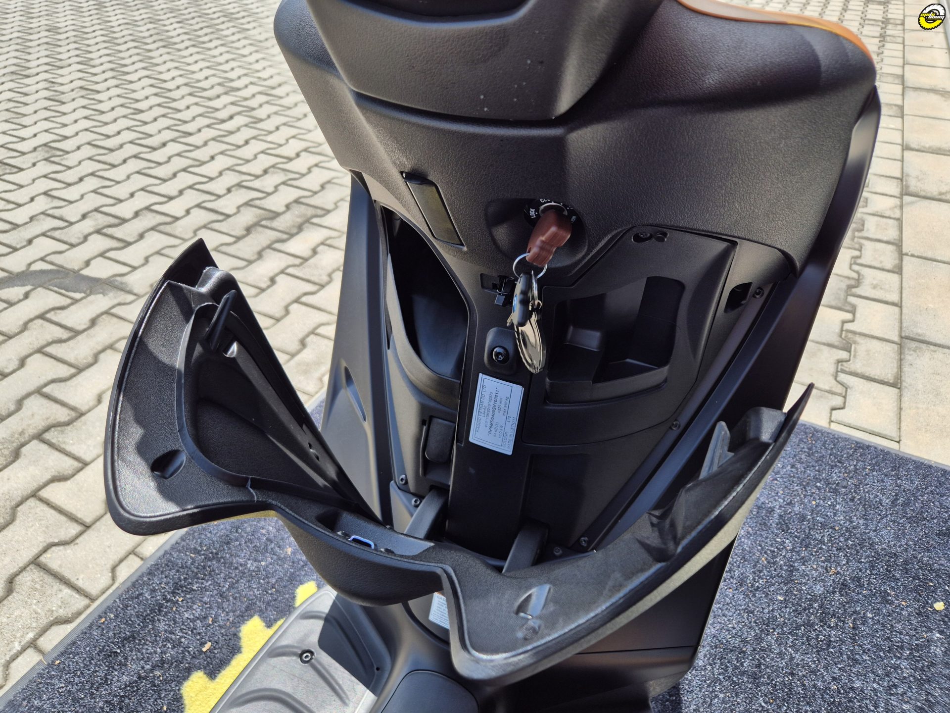Úložný prostor pod sedadlem Piaggia Medley umožňuje vzít si s sebou vše, co během dne potřebuješ. Vejdou se do něj dvě otevřené přilby a otevírá se snadno, elektronicky - pouhým stisknutím tlačítka na řídítkách. Palivová nádrž je umístěna uprostřed podlahy, což nejen maximalizuje dostupný úložný prostor, ale také zlepšuje stabilitu skútru. A co je nejlepší, při tankování není třeba vůbec sesedat.