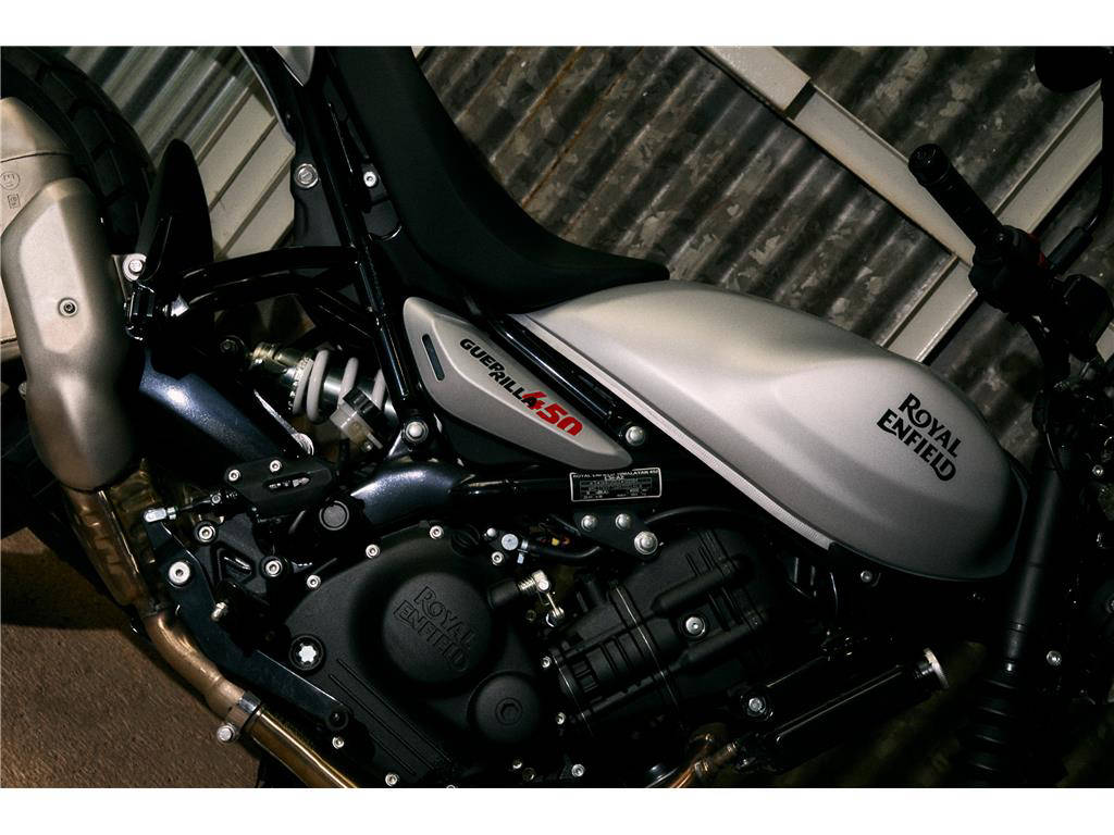 Model Guerrilla 450 je navržen pro všechny druhy asfaltu. S motorem "Sherpa" o objemu 452 ccm s výrazným charakterem vyladěným v zájmu vzrušujícího výkonu na silnici, silným dvojitým páteřovým ocelovým rámem, dynamickou jízdní polohou, která umožňuje vzpřímenou jízdu nebo mírně sportovní předklon, se model Guerrilla 450 opravdu vrací k základům původních roadsterů. Jeho dynamická ergonomie a živý výkon zaručují jedinečnou univerzálnost a citlivost, které přispívají k příjemné jízdě. Ať je to vzpřímeně, v předklonu, sprintem na plný plyn, po klikatých silnicích nebo při kodrcání po hrbolatých městských ulicích a kličkování v provozu, při líné jízdě nedělním ránem nebo během víkendové vyjížďky je model Guerrilla dychtivý a přizpůsobivý pro to vše, je skutečnou „motorkou na všechny cesty“.