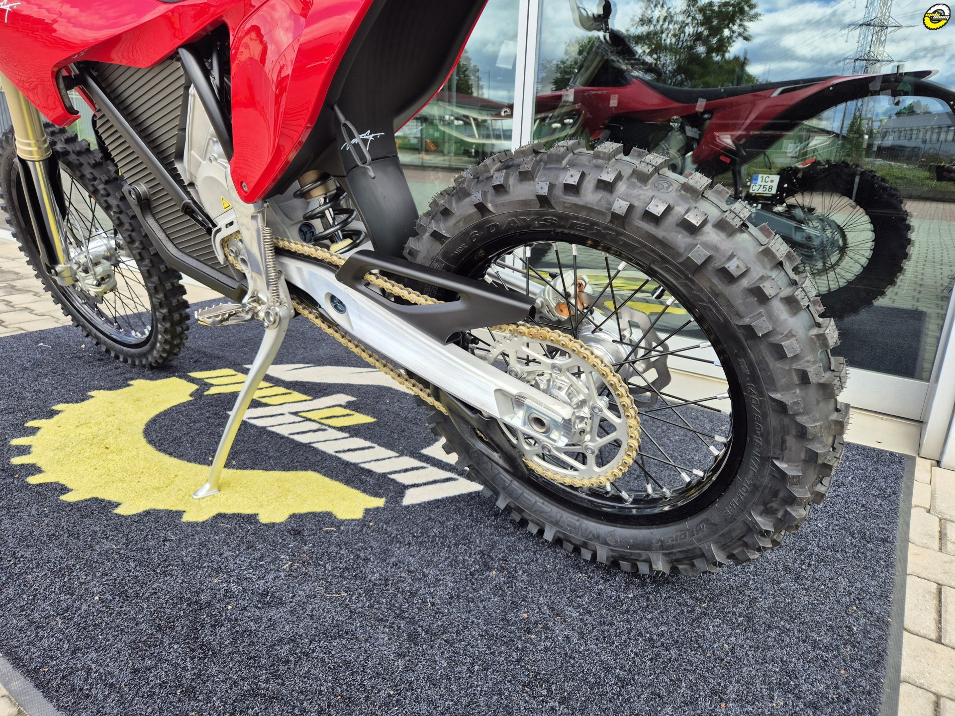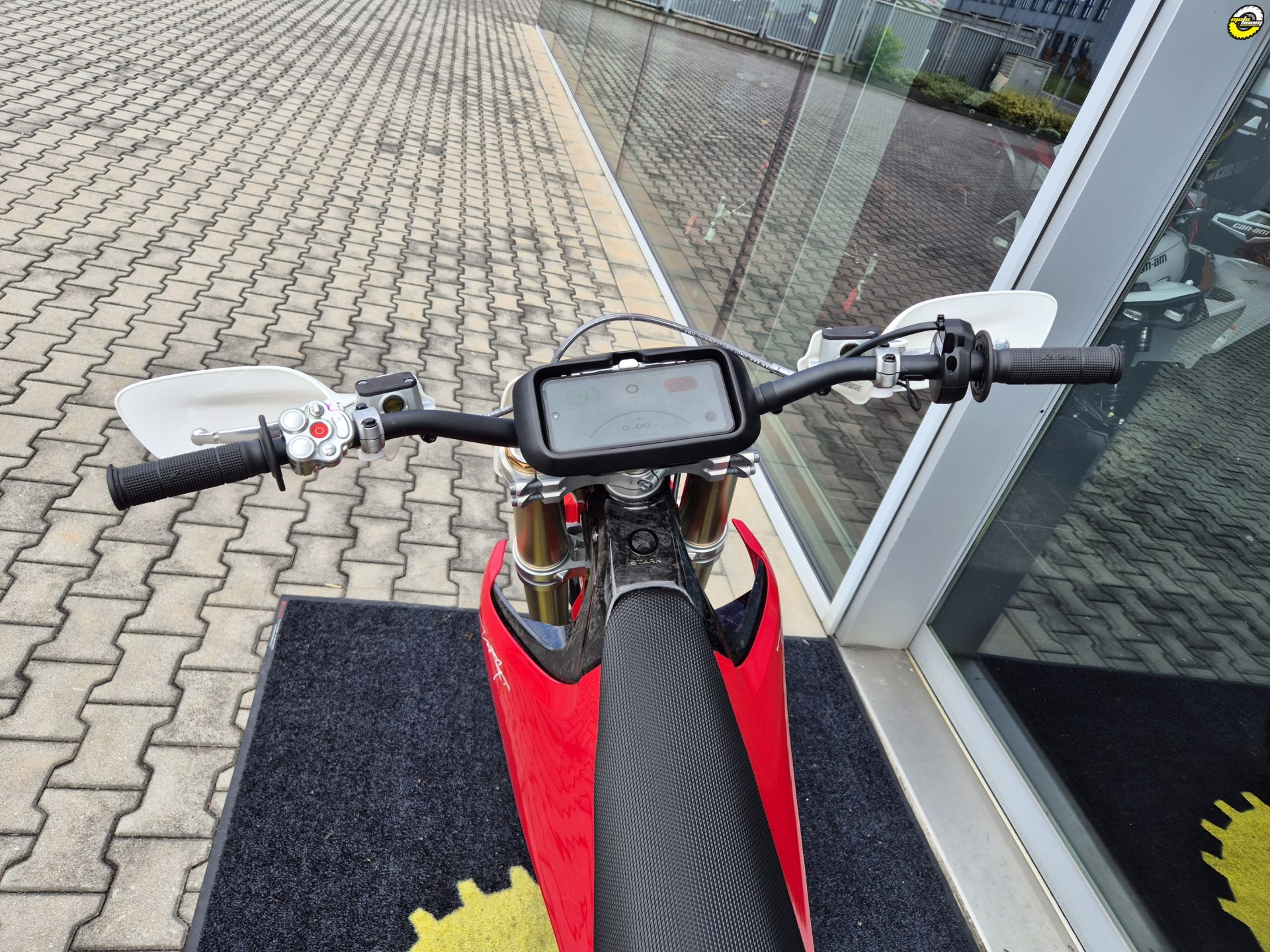 Dojezd podobný plné nádrži na 450, dostatečný k dokončení celého závodu MXGP v závislosti na podmínkách na trati nebo až 6 hodin jízdy na trailu.