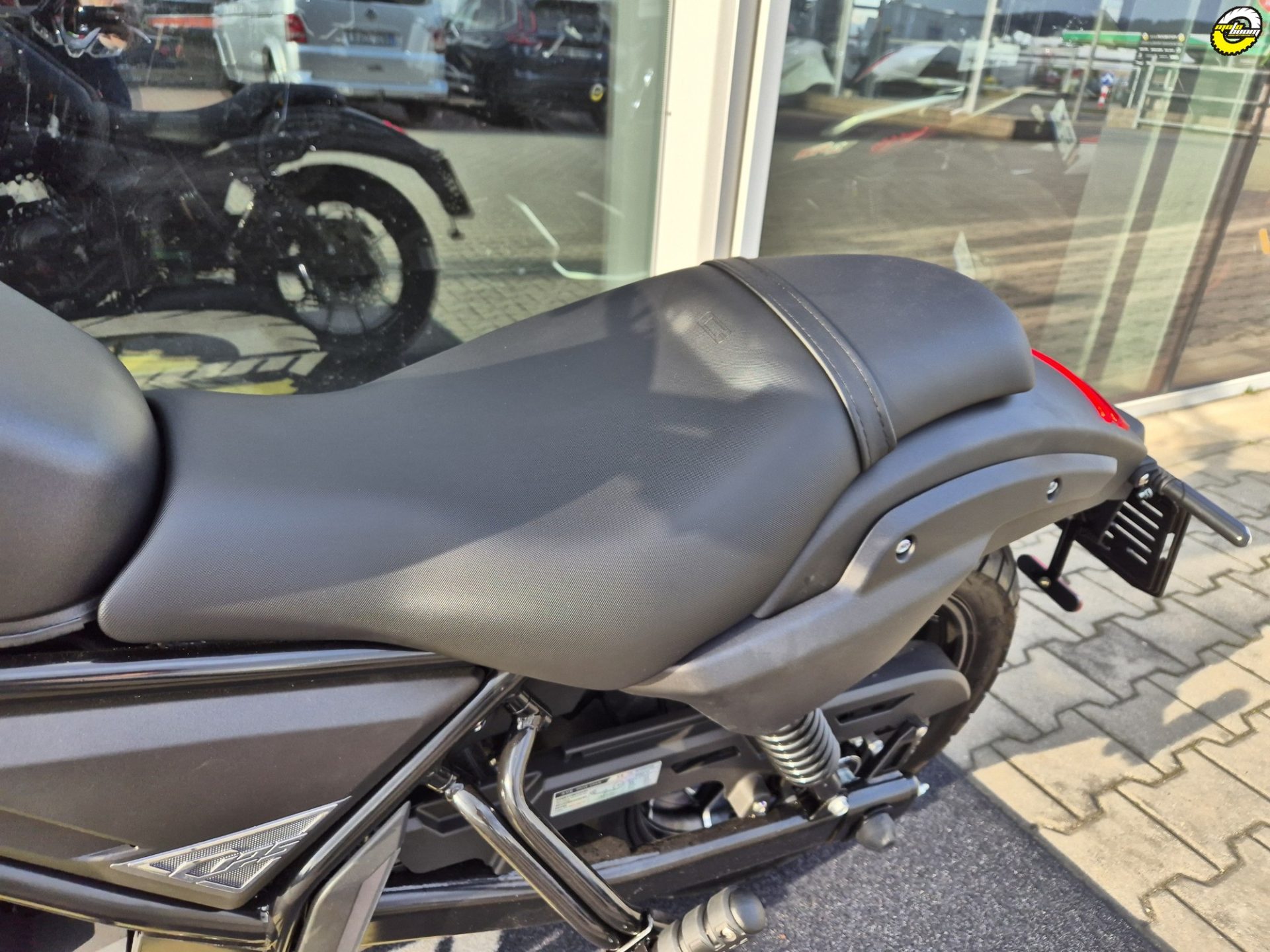 Model Zontes 125 Custom charakteristický rovnými a hranatými liniemi, nakloněnou nádrží a sedlem typickým pro zakázkové modely, ztělesňuje éru, kdy silnice byly neodolatelným voláním po dobrodružství. Motor nové konstrukce poskytuje maximální výkon 14,6 hp. Hliníkový válec rychleji odvádí teplo, zlepšuje výkon a je klíčovým faktorem pro prodloužení životnosti motoru. Věnujte pozornost detailům, buďte uvolnění a pohodlní, a ukažte svůj svobodný postoj. Měkký podsedák, plný sportovního ducha, nabízí snadnou jízdu na silnici a posouvá zážitek z jízdy na novou úroveň – skutečně pocítíte vítr svobody. Výška sedadla 700 mm vám umožňuje nastavit si vlastní pohodlný jízdní režim, který neomezuje vaše pohybové možnosti a poskytuje maximální pocit bezpečí při objevování nových cest. Integrovaný velkoplošný vodou chlazený radiátor zajišťuje vysokou účinnost odvodu tepla. V horkém počasí vám poskytne optimální pohodlí a umožní snadnou jízdu bez ohledu na teplotu, vše s doprovodem příjemného vánku.